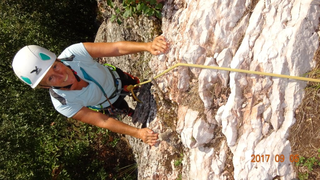 Schöne, sehr leichte Genussklettertour im ganz rechten Teil der Parete San Paolo. Die Tour ist für die Schwierigkeit lohnend und hat nur in der letzten Seillänge eine kurze Gehpassage. Die Tour spircht vor allem Einsteiger an und wurde von den Erstbegehern deshalb auch mit einigen Bohrhaken ausgestattet. Die Ammoniti sind Versteinerungen, die man in der letzten Seillänge sieht - neben den Form sollte man dort aber auch einen Blick auf die Festigkeit werfen (etwas brüchig). Gesamt eine gelungene Tour die bei unsicherem Wetter oder als Zweittour für den Einstieg zu empfehlen ist!
