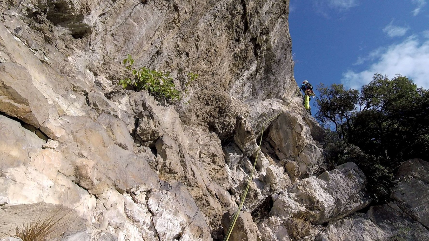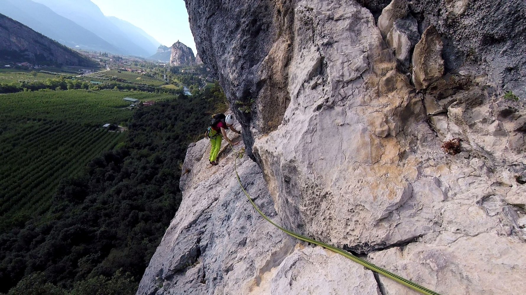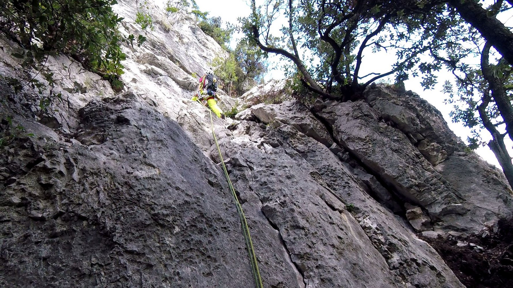 60 m Einfachseil, 10 Expressschlingen, Bandschlingen für Sanduhren und Baumstände, evtl. ein paar mittlere Friends, sowie einen Helm.