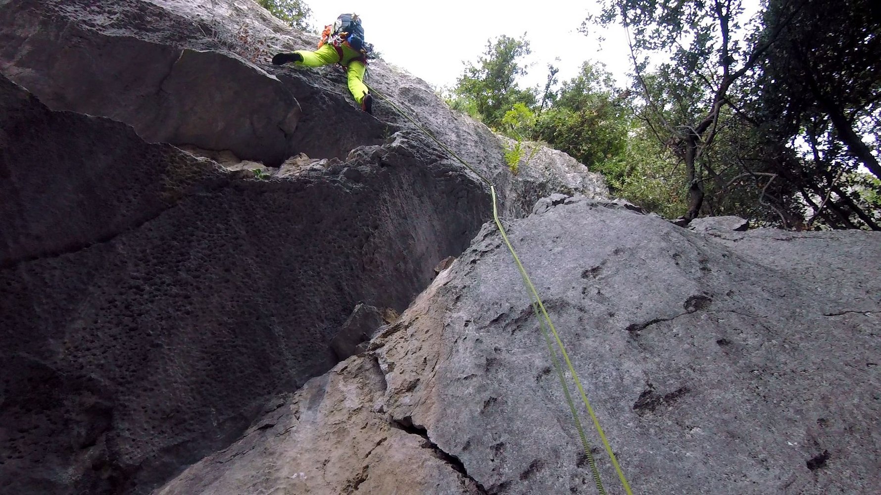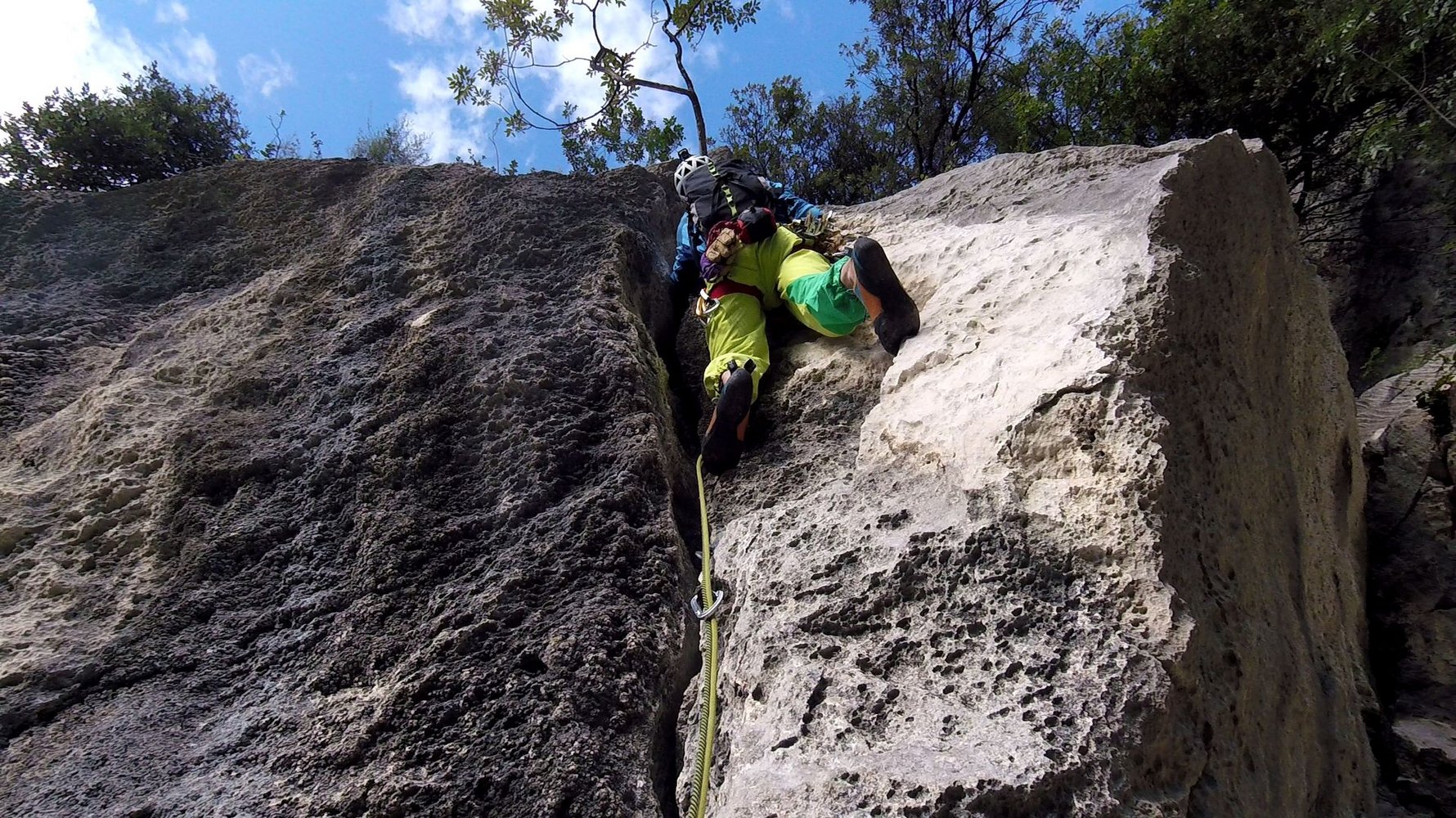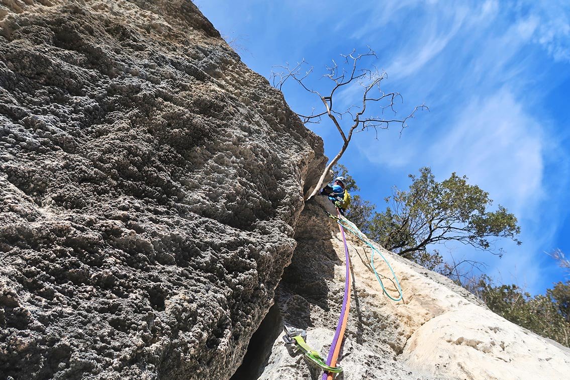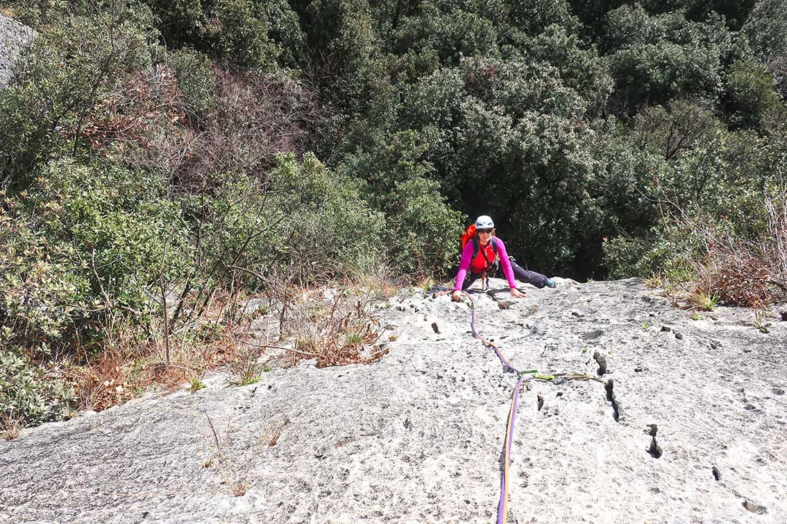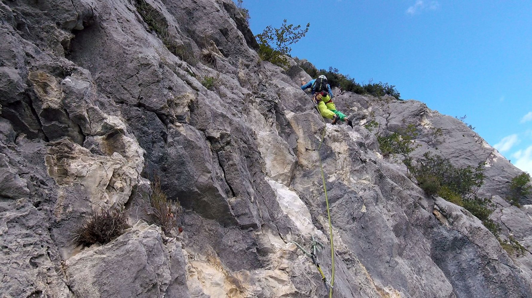 Trotz der guten Absicherung sollte der Vorsteiger im 5ten Grad sicher unterwegs sein, auch der Faustriss in der 3ten Seillänge sollte nicht unterschätzt werden.