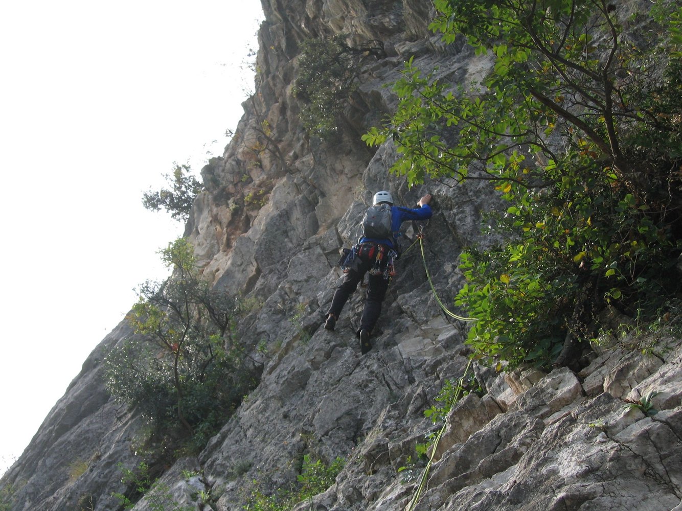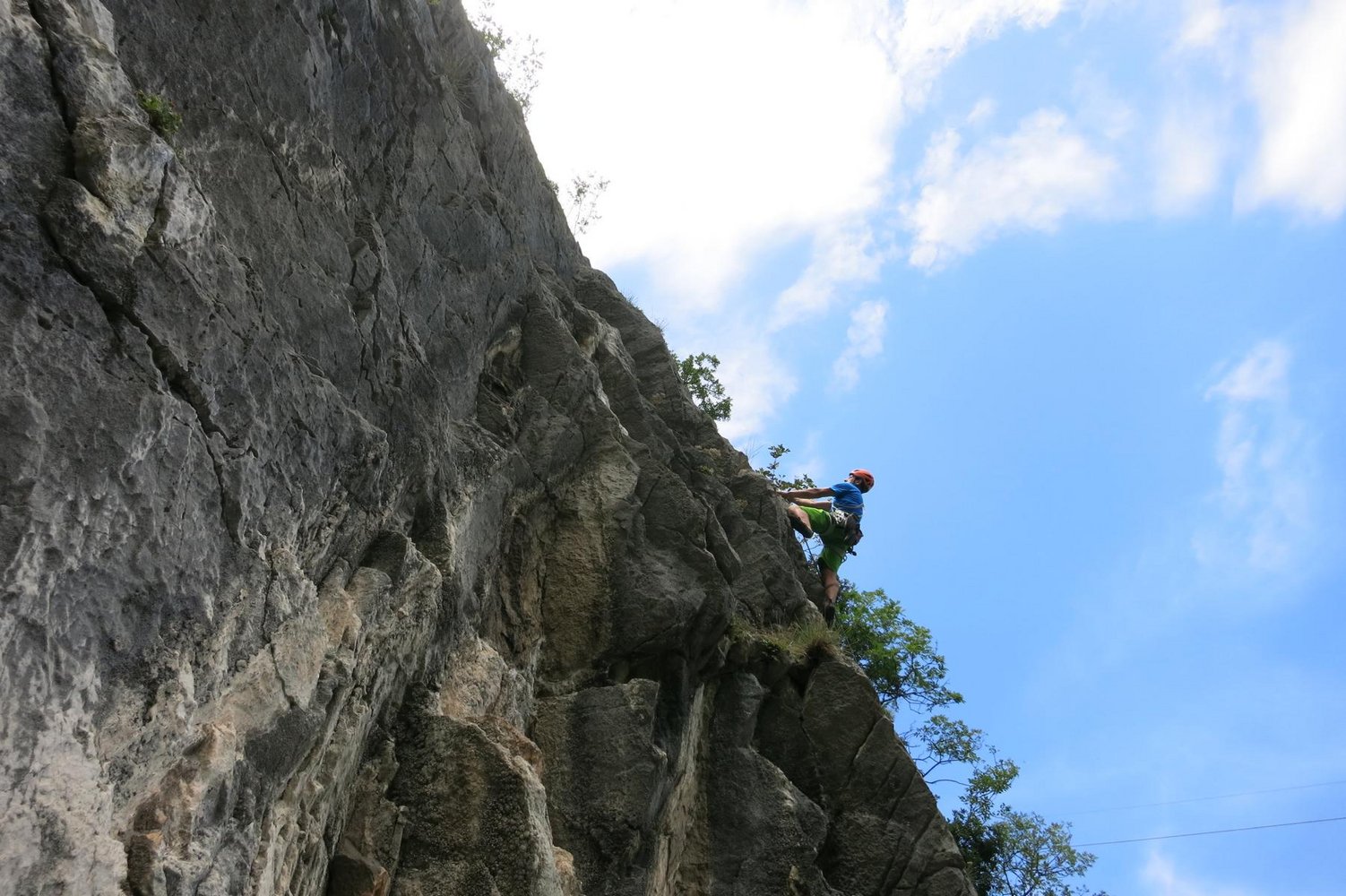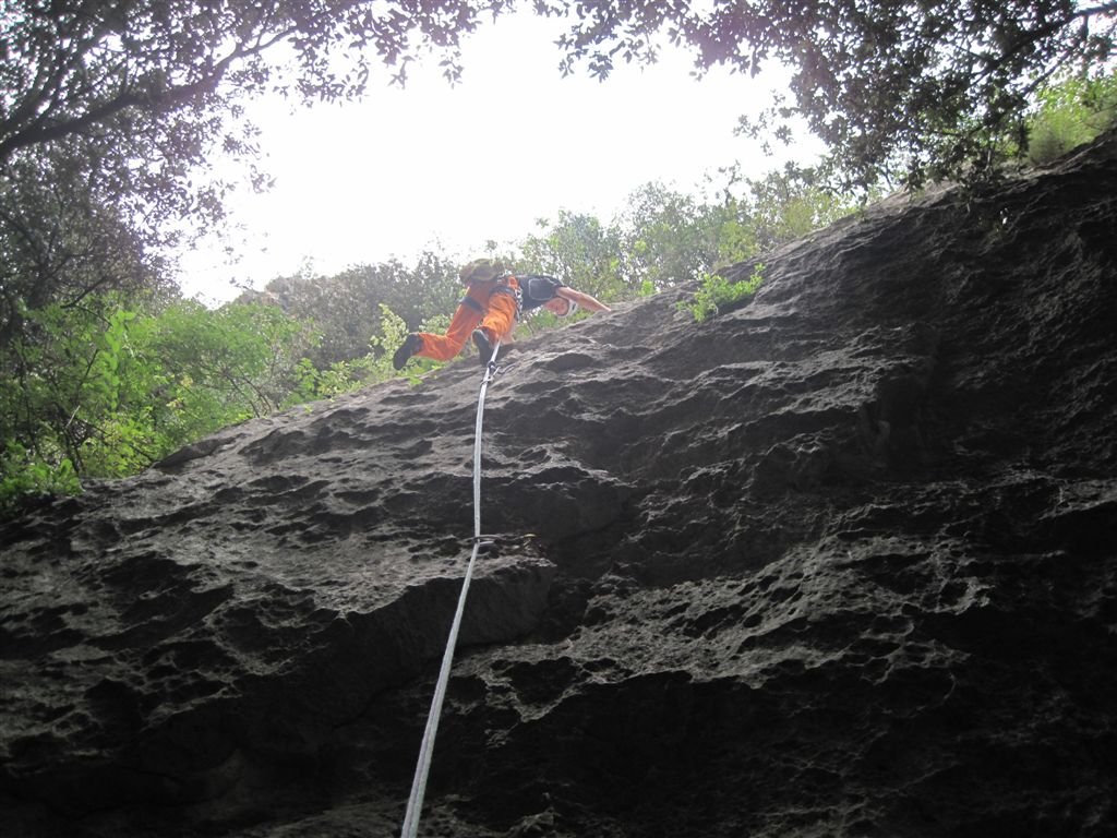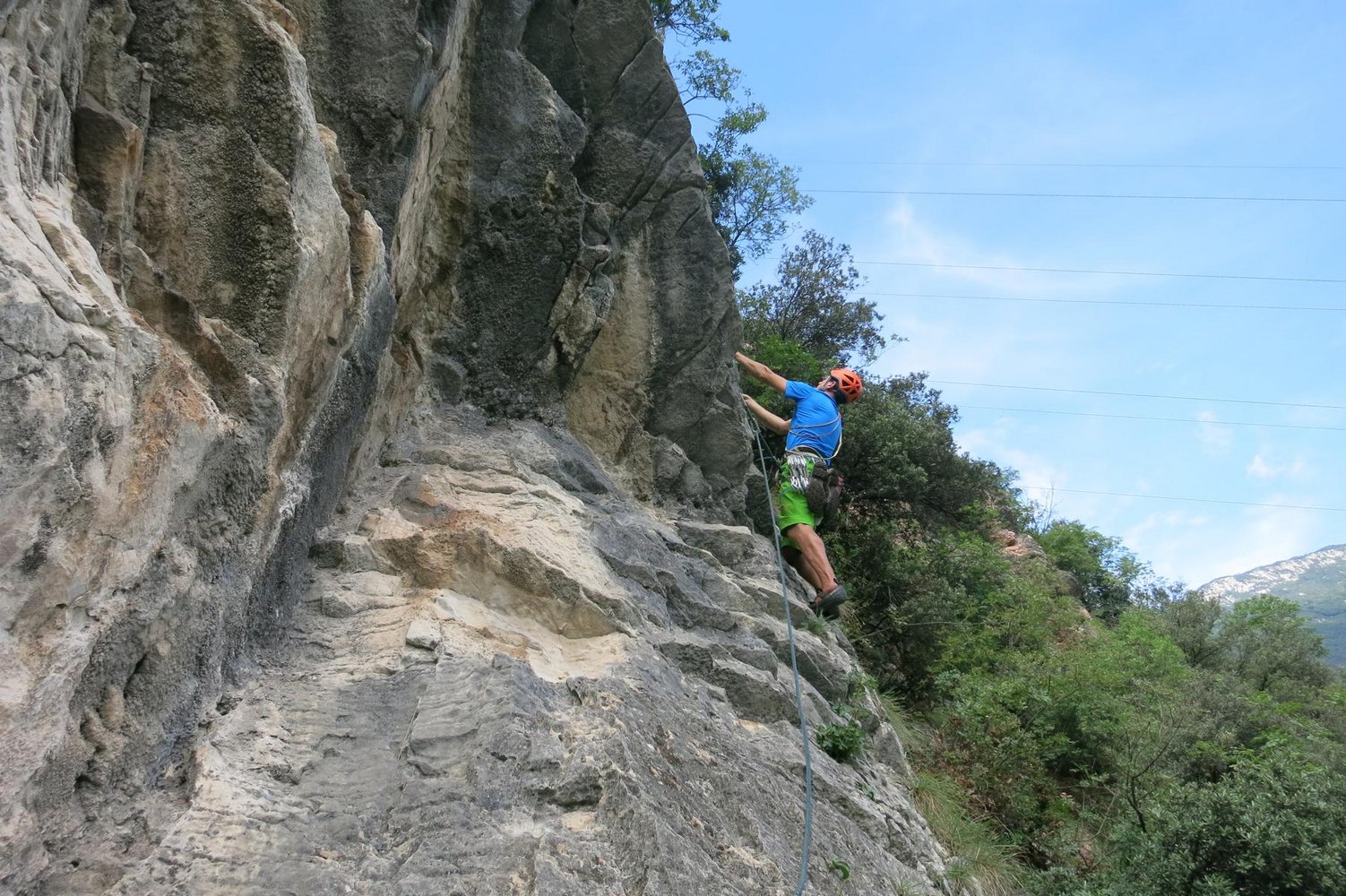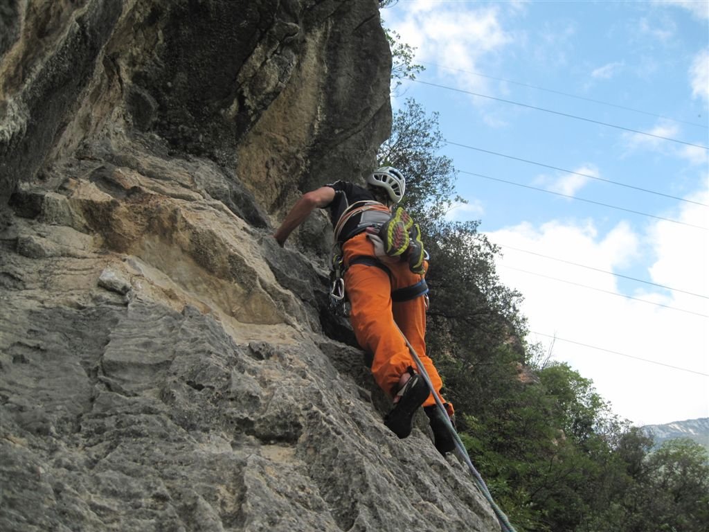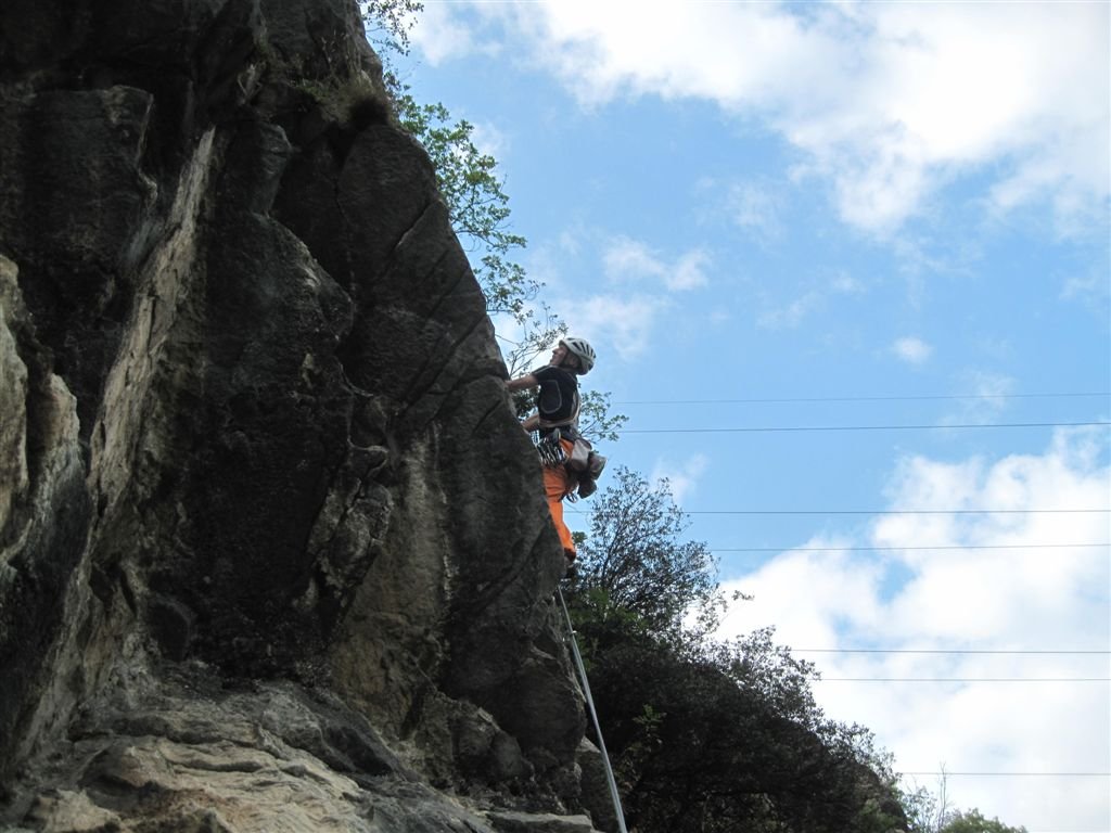Schöne Kletteroute an der Parete San Paolo Nord die nach oben hin immer schwieriger und steiler wir. Die Tour findet zwei Pfeilersysteme, von denen der erste Plattenkletterei an guten Griffen und der zweit immer steiler werdenden Wandkletterei an großen Henkeln bietet. Die Kletterroute liegt direkt über dem Parkplatz.