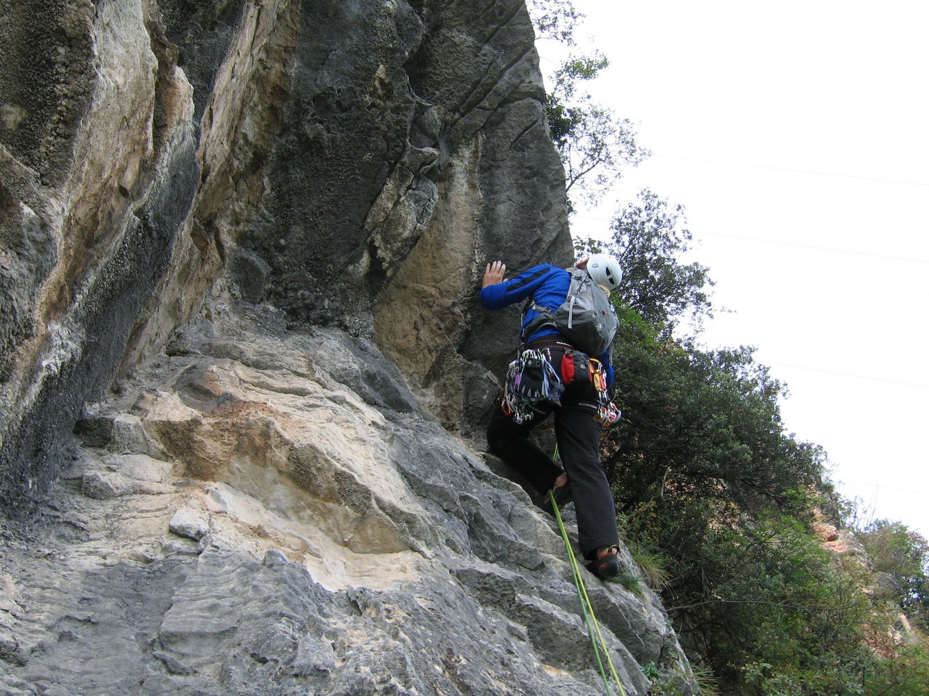 Die Tour ist mit vielen Sanduhren gesichert und an den schwierigen Stellen stecken Bohrhaken. Der Vorsteiger sollte aber trotzdem etwas Erfahrung mitbringen und die angegebenen Kletterschwierigkeiten beherrschen. Die erste Sanduhr in der 1. Seillänge befindet sich z.B. in erst in gut 5 m Höhe.
