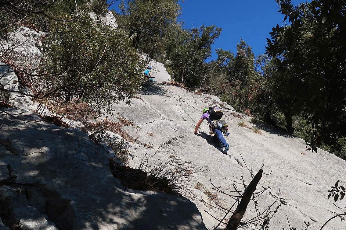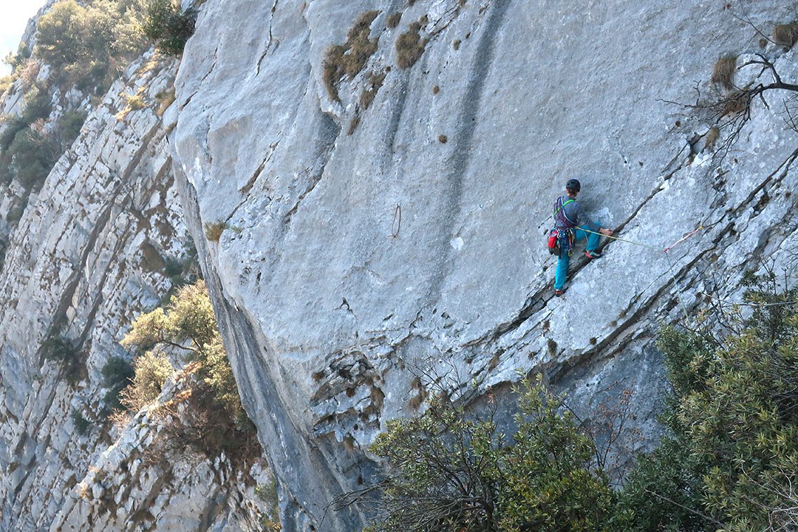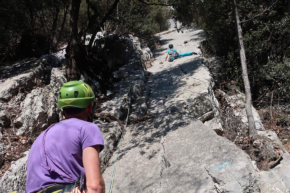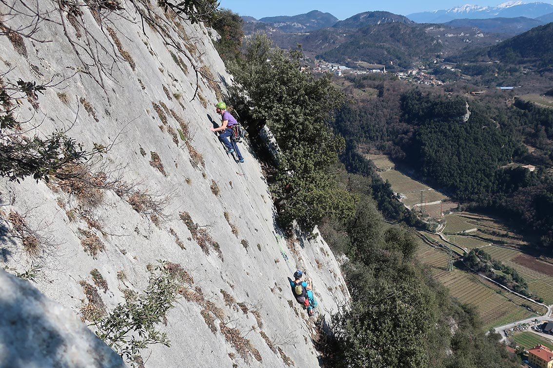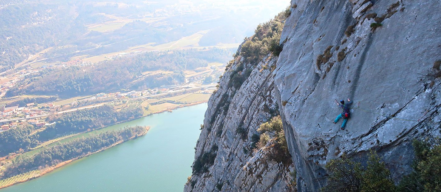 Die Via Giubileo ist eine etwas anspruchsvollere Route an den östlichen Felswänden von Due Laghi. Man muss vor allem an den leichteren Passagen viel Eigeninitiative bei der mobilen Absicherung mitbringen. Die Route ist aber beliebt und wird von Kletterern mit alpiner Erfahrung gerne wiederholt – Abenteuerklettern oberhalb des Lago di Santa Massenza.