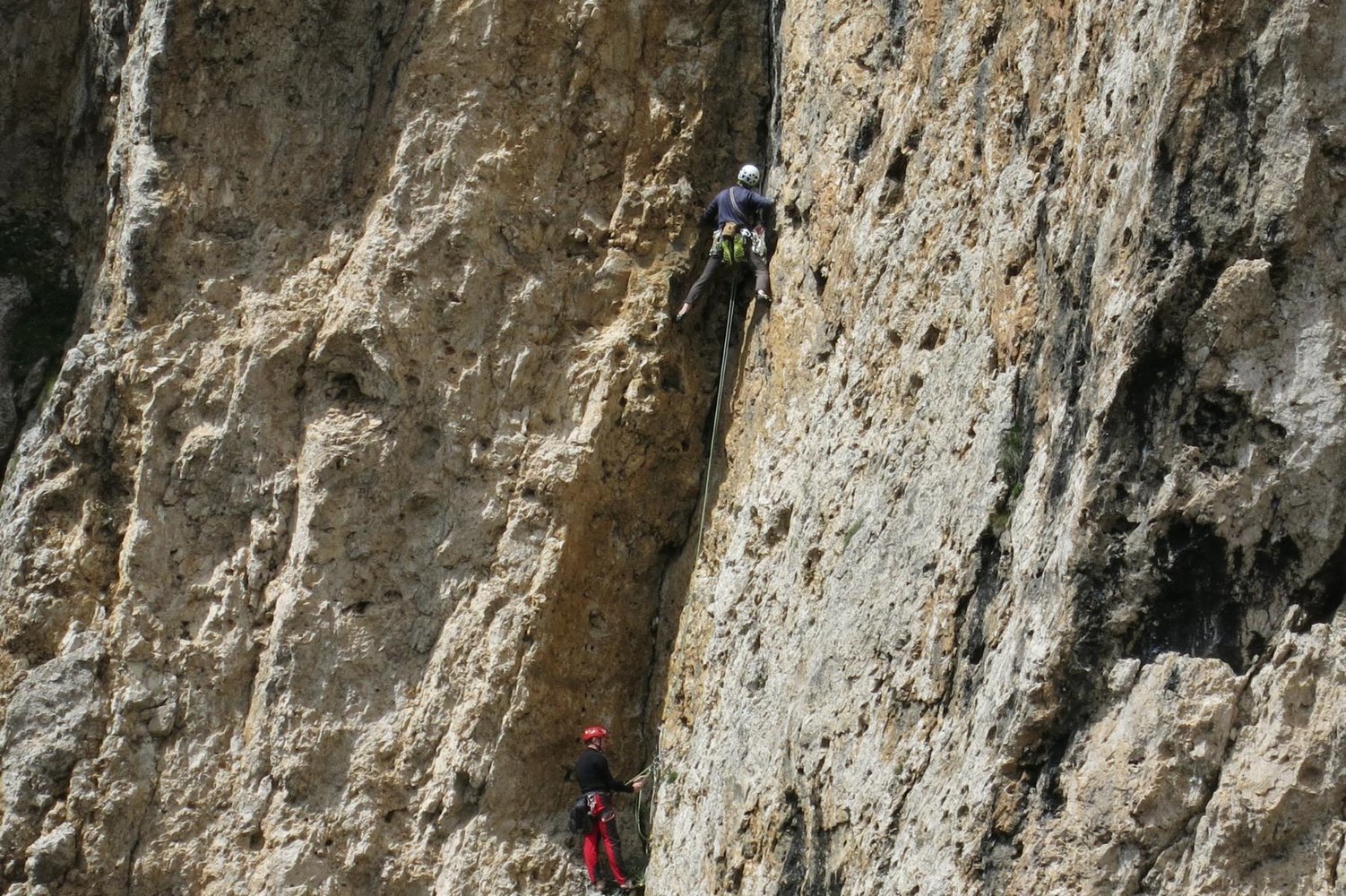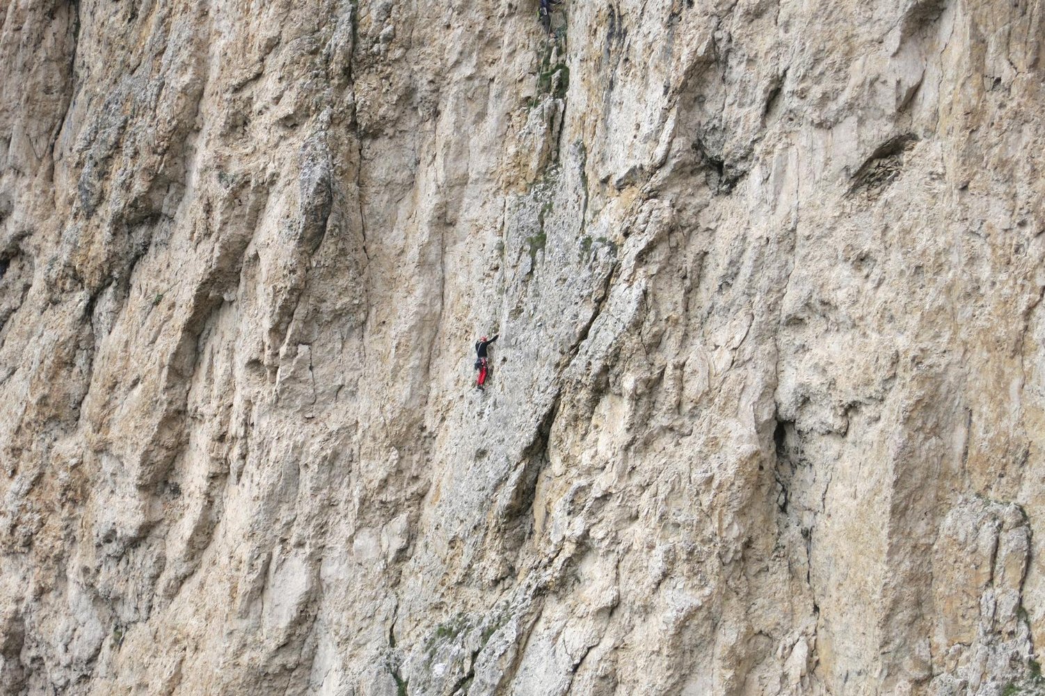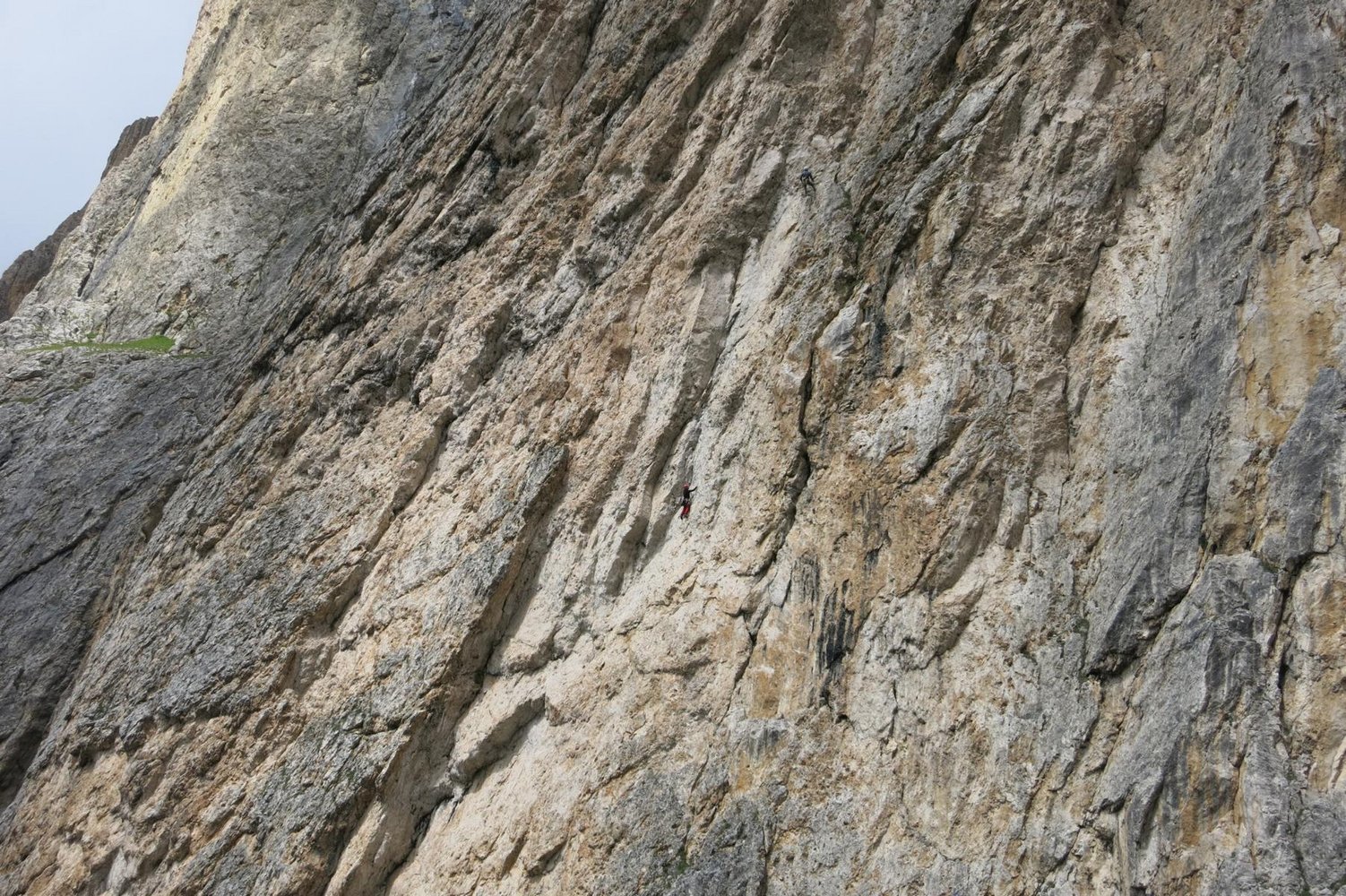Interessante Routen zwischen kleiner Micheluzzi und Rampenführe. Nach einigen klassichen einfachen und spärlich gesicherten Plattenlängen stellt sich die Wand auf und bietet perfekte Kletterei in steilem Dolomitenfels. Nach Regen rasch wieder trocken.