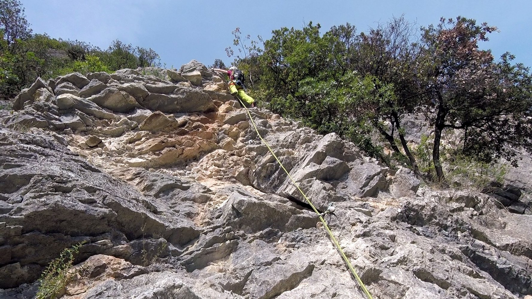 Vor allem in der vierten Seillänge sollten die vielen Blöcke auf Festigkeit geprüft werden!