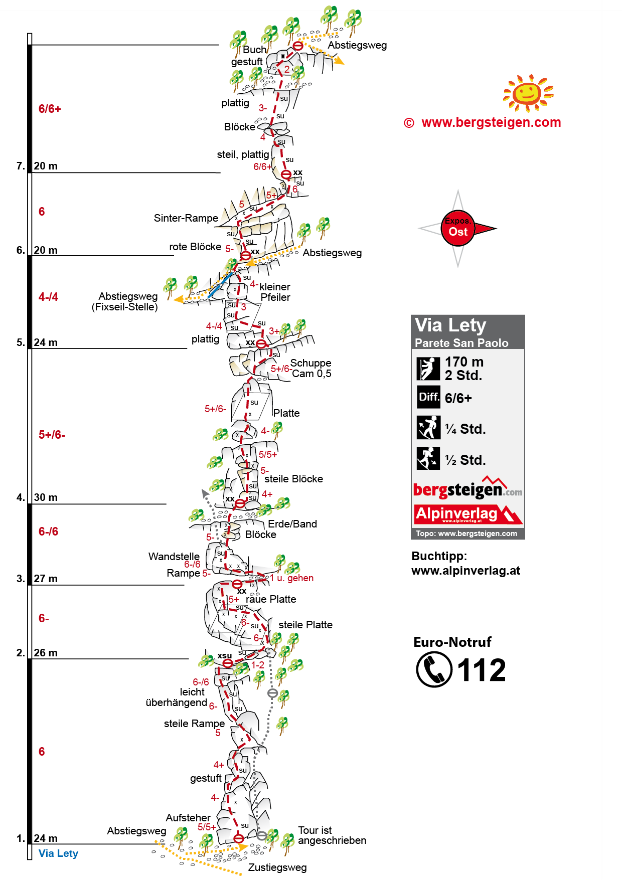 Die Via Lety ist quasi eine ausgebaute Variante der "10 Anniversario", die schönen Passagen der ehemaligen Route wurden integriert, oben ein pfiffiger Ausstieg dazu gebaut. Die Absicherung ist überraschend gut, einmal muss man aber zwingend einen Cam 0,5 oder Ähnliches anwenden. Eine schöne Genussroute, die auch als gelungene Entlastung der oft sehr überlaufenen Via Linda dient.
