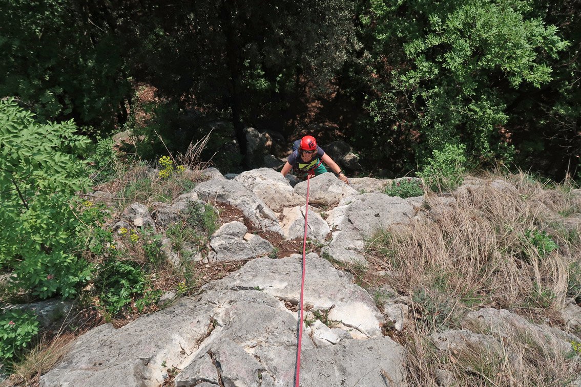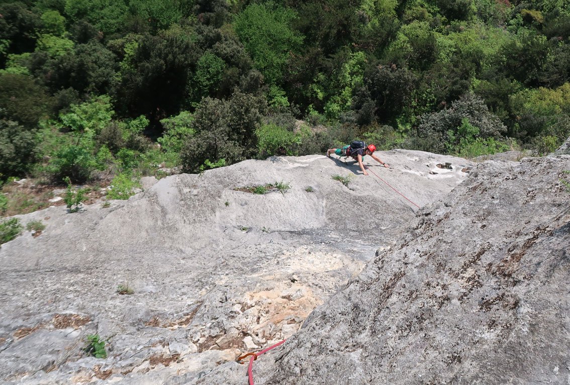 Wirklich lohnende Tour an der ganz linken Seite der Parete San Paolo. Die Tour ist im Grill/Kluckner Stil gesichert - Bohrhaken und Sanduhren sind vorhanden. Im oberen Teil kann man dann wählen - links zwei tolle Seillängen bei denen man die Absicherung aber mit mittleren Friends verbessern muss oder man klettert rechts eine nicht ganz so schöne Verschneidung mit 11 Bohrhaken auf 30 Meter hinauf zum Ausstieg. Eine von den Erstbegehern wirklich sehr gut gemachte Tour mit einem Friend- bzw. Paisir-Ausstieg!
