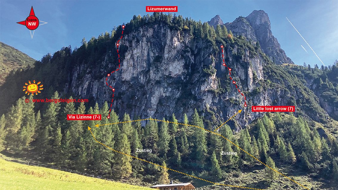 Die Via Lizinne ist eine kurze, mit Bohrhaken gesicherte Route an der Lizumerwand. Der Zustieg ist genauso kurz wie die Kletterei - die Route ist ideal, wenn man einmal etwas Abwechslung vom Martinswandspeck braucht. Teilweise ist der Fels, vor allem weiter oben, etwas brüchig. Empfehlenswert ist diese Tour vor allem an warmen Tagen, weil die Wand lange im Schatten liegt.