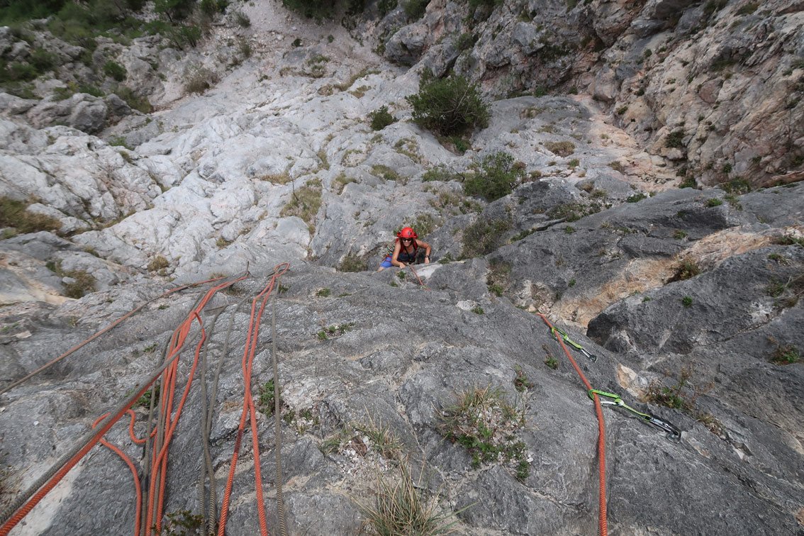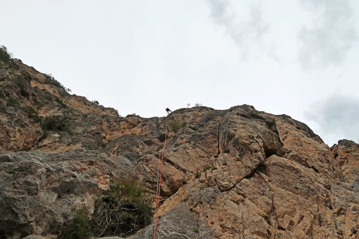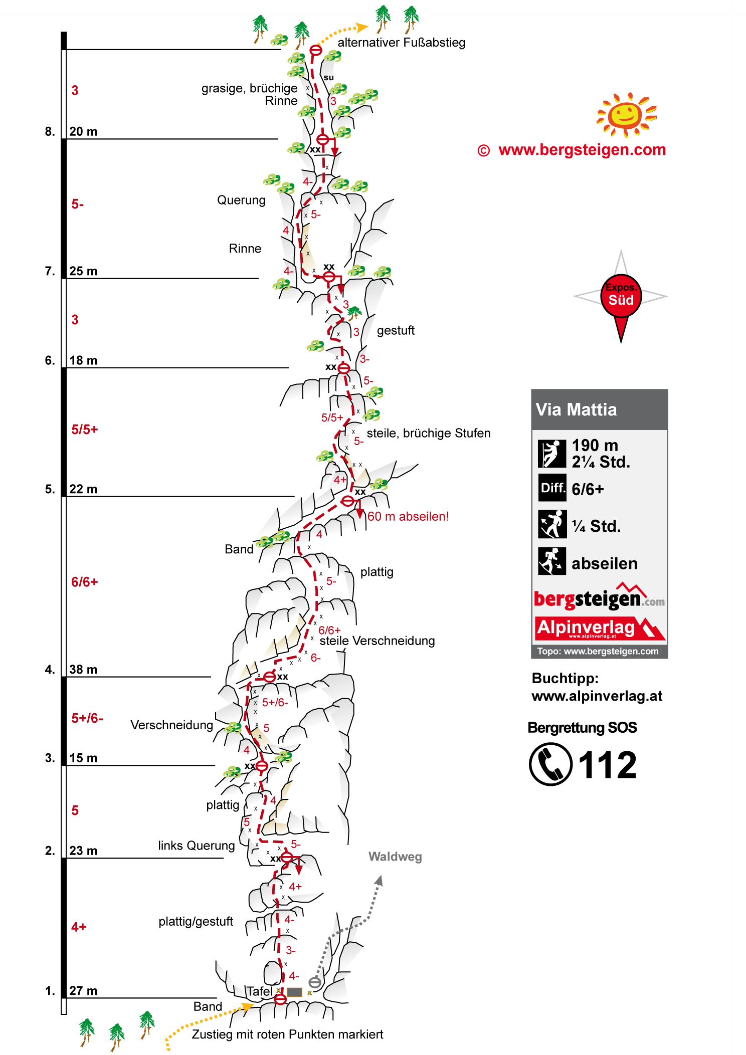 Na ja, wenn man gerne an brüchigem und sandigem Felsen klettert, ist man in der Via Mattia genau richtig. Es gibt nur wenige Passagen, die wirklich lohnend sind und auch sonst ist man in der Regel froh, wenn dieses Kletterabenteuer sein Ende hat. Beim Abseilen sind aber verdächtig wenig Steine runter gefallen - da hätten wir uns in Anbetracht der desolaten Felsqualität eigentlich ein größeres Bombardement erwartet. Fazit: Als Trainingstour für alpine Bruch-Klassiker evtl. zu empfehlen, wer lieber was schönes klettert, geht besser gleich an die Geierwand.