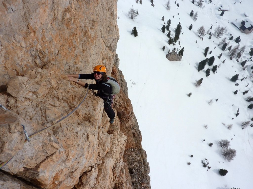 Eine schöne und vielbegangene Genußtour am Torre Grande, die in den ersten 2 Seillängen gleich mit der DIMAI DIREKT