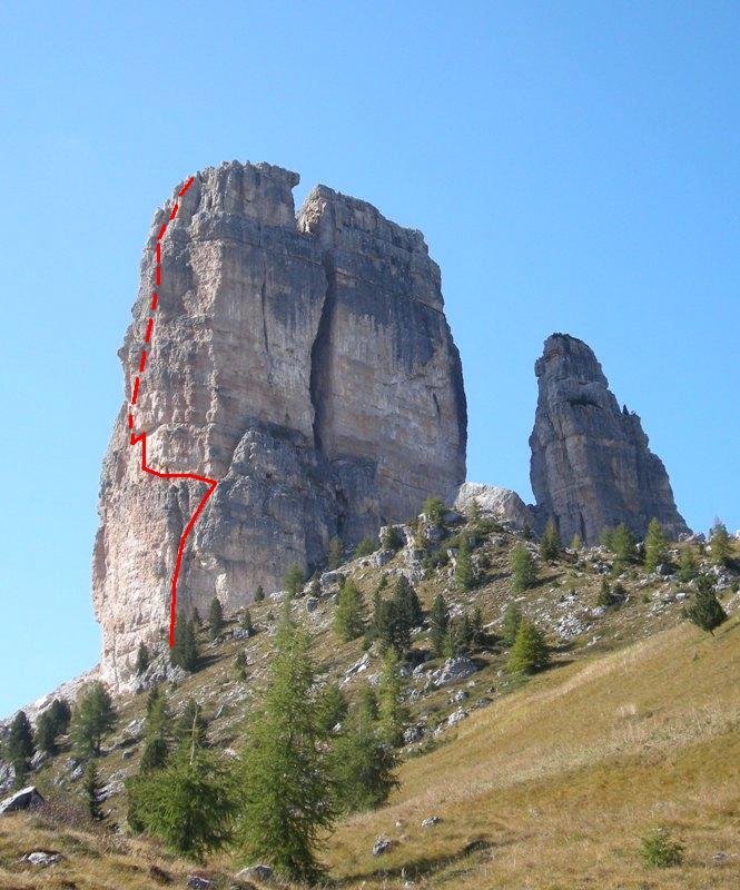 Vom Parkplatz des Rifugio Cinque Torri in 10min zu den gut sichtbaren Türmen. Der Einstieg befindet sich unter der Verschneidung mehr oder weniger auf der Südostkante des Torre Grande. Sollte leicht zu finden sein. Einstieg und die ersten 1,5 Seillängen sind dieselben wie die Via Miriam. Höhe Einstieg: ca. 2200m Seehöhe