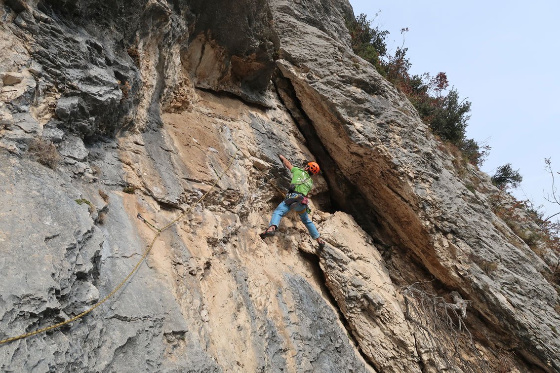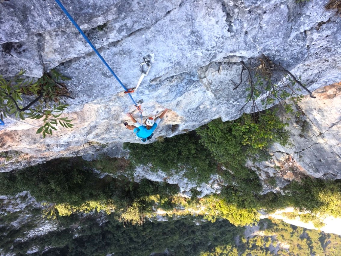 Großartige Verschneidungskletterei in fast immer gutem Fels. Sehr steil und athletisch, aber immer perfekt mit Bohrhaken gesichert. Die Crux wartet in der letzten Seillänge - diese kann aber gut A0 geklettert werden. Dort, wo der Fels in der Verschneidung brüchig ist, weicht die Route geschickt nach links auf tolle Tropflochplatten aus. Eine wirklich empfehlenswerte Route!