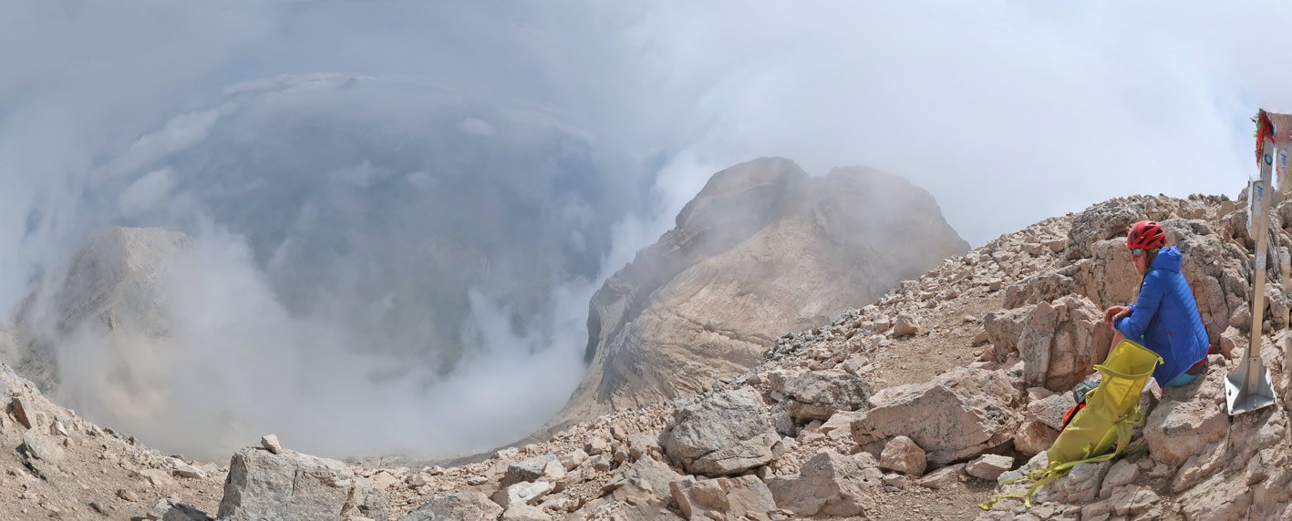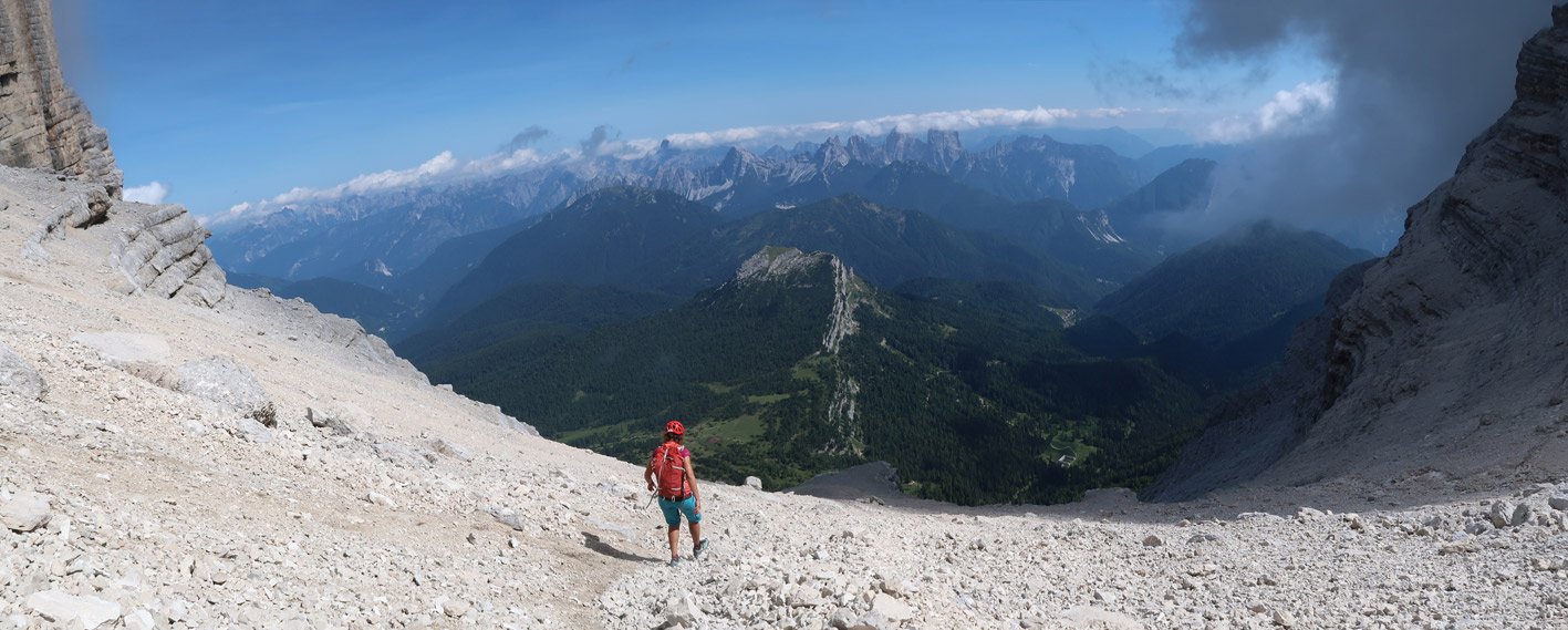 Eindrucksvoller Anstieg auf den riesigen Felsklotz, welcher zwischen Civetta und Antelao steht - der 3168 m hohe Gipfel des Monte Pelmo gehört zu den höchsten Erhebungen der Dolomiten. Da der Aufstieg einige Kletterstellen bis zum zweiten Schwierigkeitsgrad aufweist und weder Seilbahn noch Straße zum Beginn der Tour führen, ist man am Monte Pelmo meist abseits des Touristentrubels unterwegs. Der von vielen Bergsteigern ohne Sicherungsseil durchgeführte Aufstieg erfordert aber volle Konzentration, die kurzen, aber recht ausgesetzten Felsaufschwünge, das Gehen im Schutt und die 1700 Hm haben es durchaus in sich! Vom Gipfel hat man einen fantastischen Rundumblick auf Tofana, Civetta, Cristallo und Antelao – diesen sollte man entspannt genießen, bevor der Kletter-Abstieg wieder volle Konzentration verlangt.