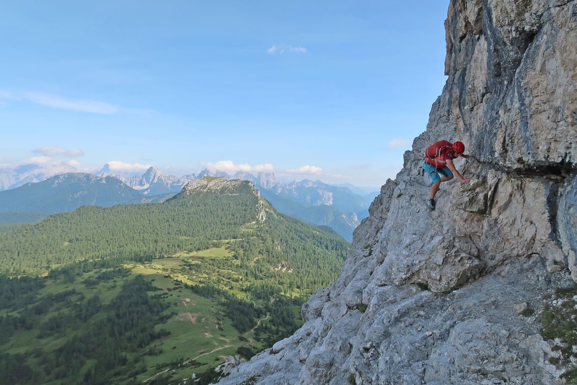 Die "Gefahr" lauert unserer Meinung nach an der Möglichkeit des unabsichtlichen Ausrutschens - es liegt auf vielen Kletterpassagen feiner Schutt. Man muss an den ausgesetzten Passagen immer sehr konzentriert steigen - vor allem beim Abstieg (wenn man naturgemäß schon etwas müde ist).