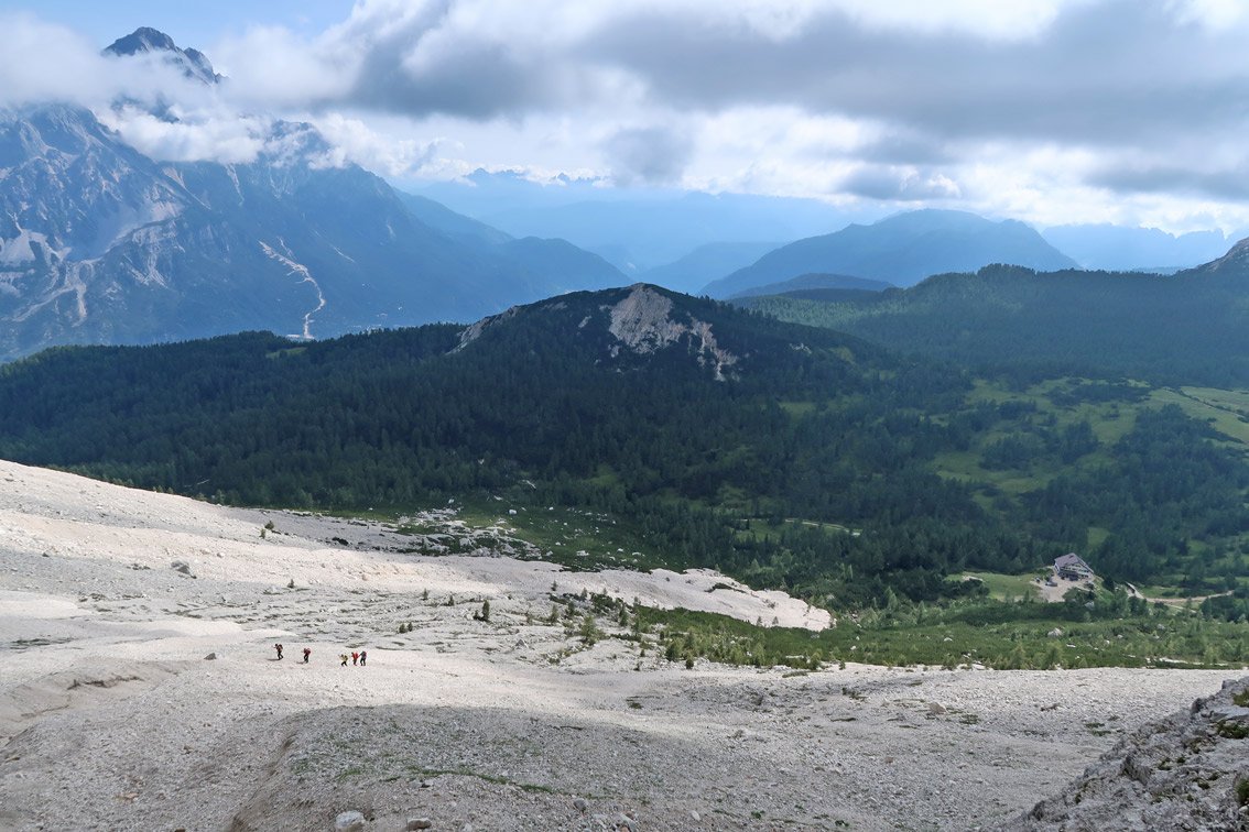 Anm.: Der Monte Pelmo wird im Frühjahr auch mit Tourenski gemacht - man trägt die Ski über das Ball-Band (dieses sollte im Idealfall schneefrei sein) und steigt ab dem Schutt auf Skiern weiter auf.