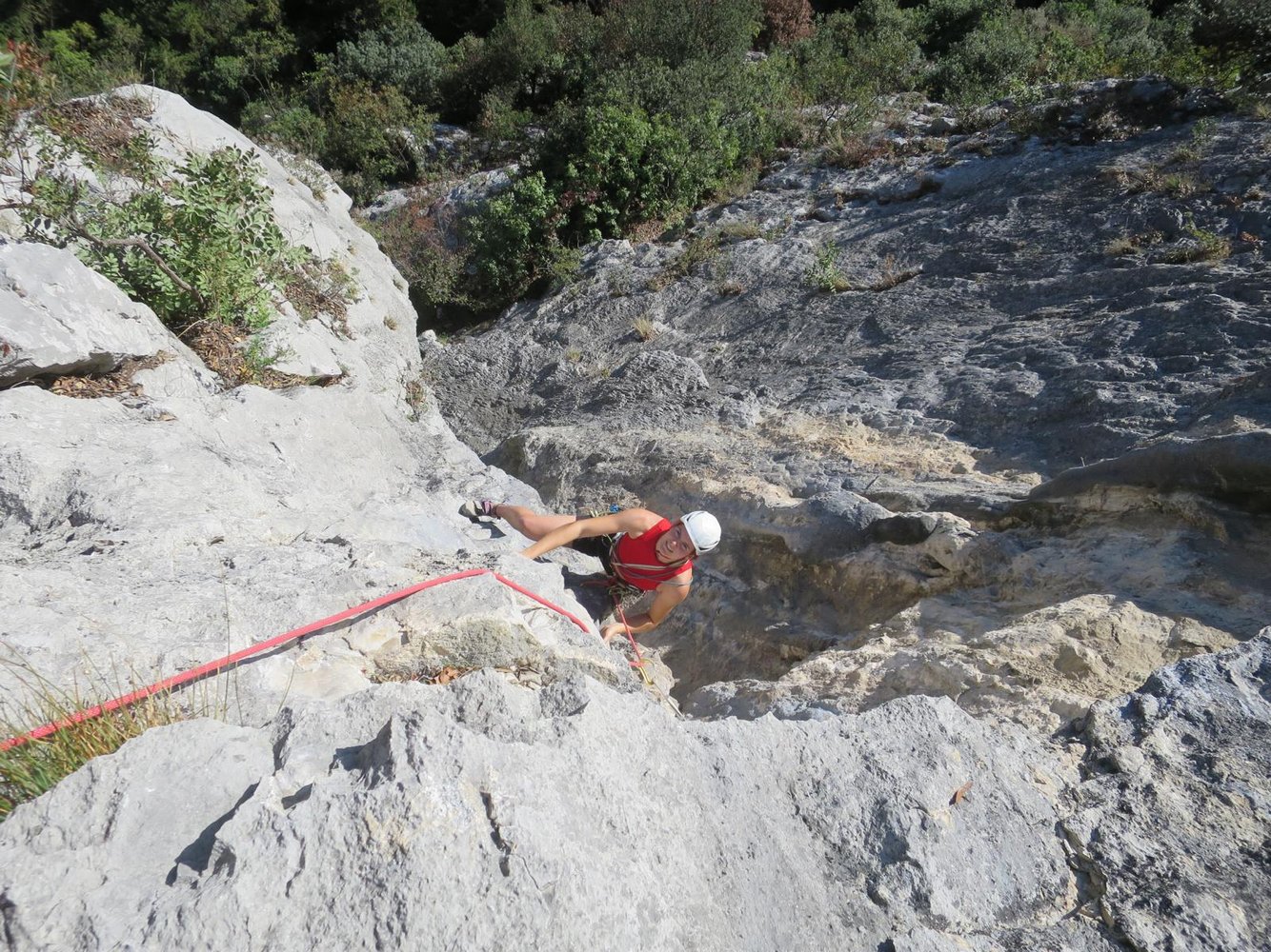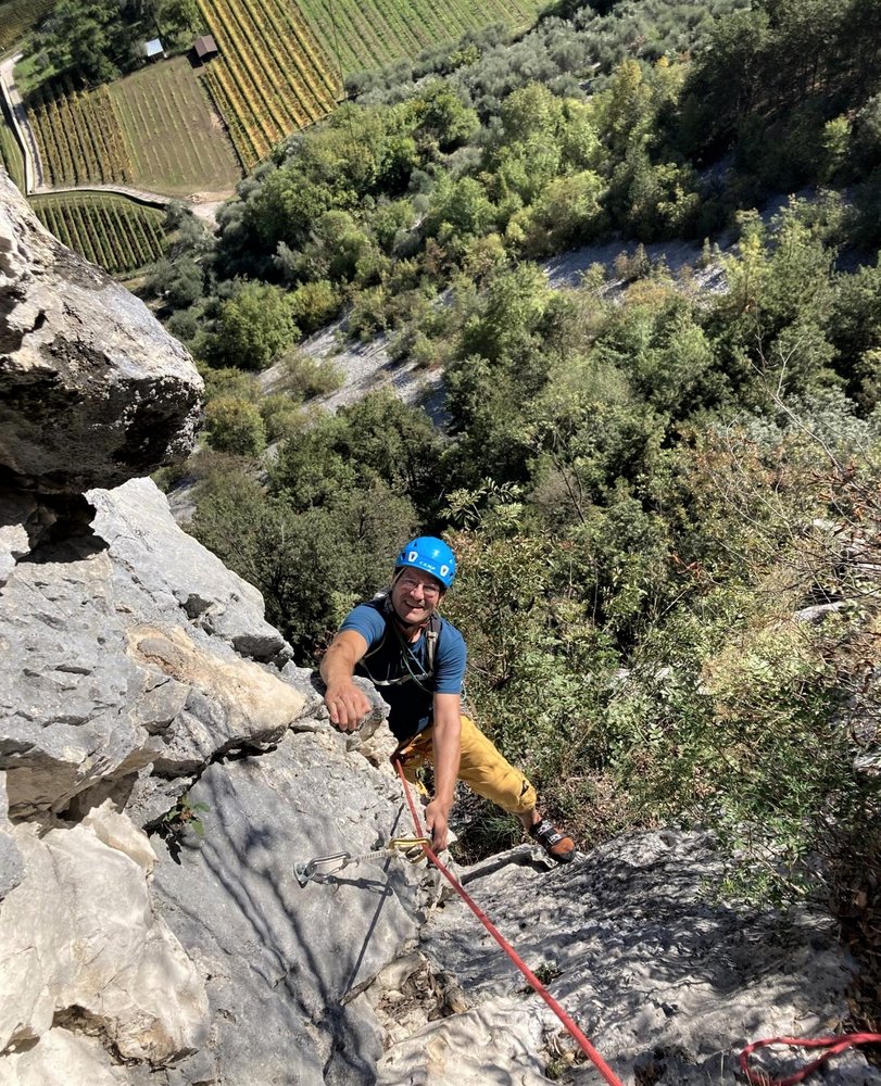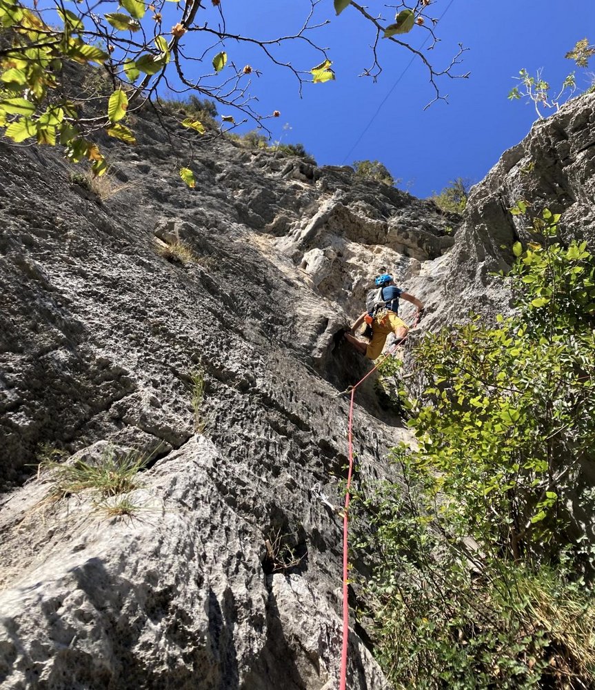 Die "Oksana" ist eine sehr lohnende Route, die im ganz linke Teil des Klettergartens La fattoria degli struzzi startet. Am Einstieg wartet ein schwerer Boulder von dem man sich nicht abschrecken lassen sollte, oben wird der Fels rauer und schöner. Die Verschneidung in der vierten Seillänge ist sensationell und es bleibt weiter schön, wobei die letzten zwei Seillängen etwas in der Qualität nachlassen.