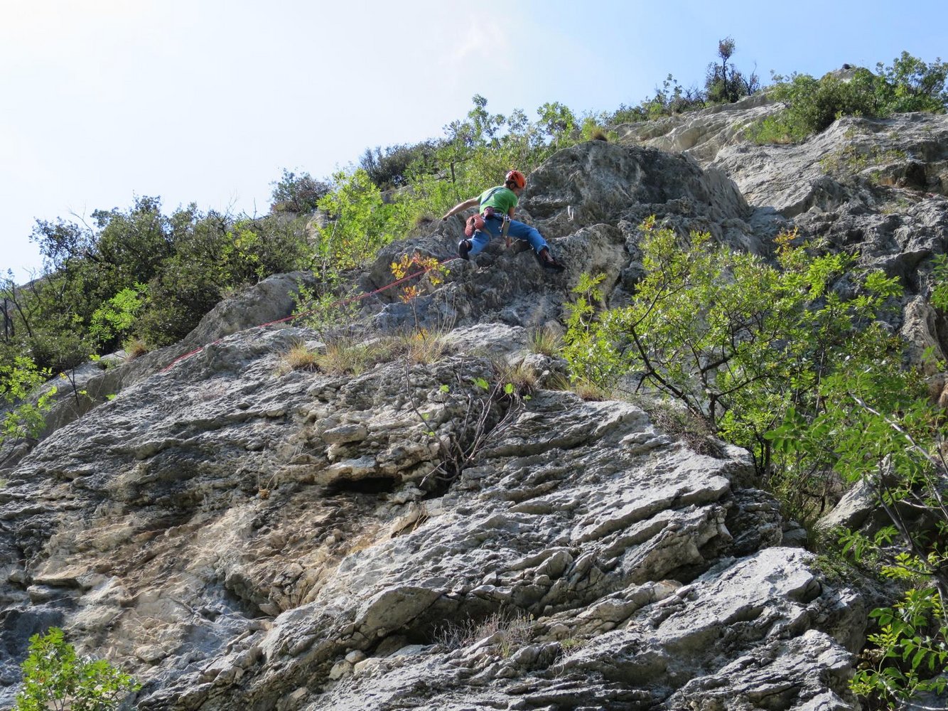 Sehr schöne und auch perfekt mit Bohrhaken abgesicherte Kletterei bei Arco. Die Via Panta Rei führt anfangs durch eine steile Wand und folgt dann in steilen Verschneidungen einem Pfeiler. Den krönenden Abschluss bildet der Pfeiler selbst! Der Fels ist immer sehr gut!