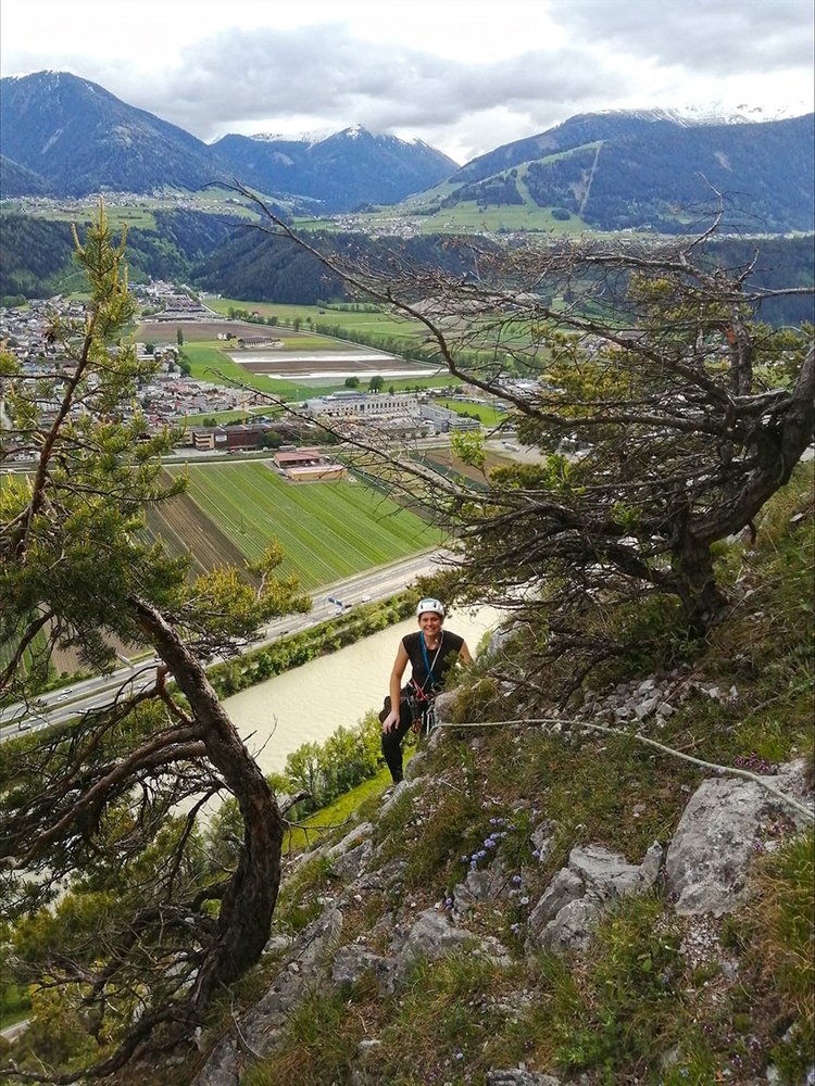 Die Route Via Pia ist eine nicht so beachtete Mehrseillängentour inmitten der beliebten Sockeltouren an der Martinswand bei Innsbruck. Die Tour ist etwas rustikaler gesichert - in der rechten Variante an der zweiten Seillängen stecken aber Bohrhaken. Wer die anderen Sockeltouren kennt, kann sich die Via Pia aber auch einmal anschauen - wegen der Normalhaken-Absicherung hebt sich diese Tour etwas von ihren Bohrhaken-Nachbarn ab.