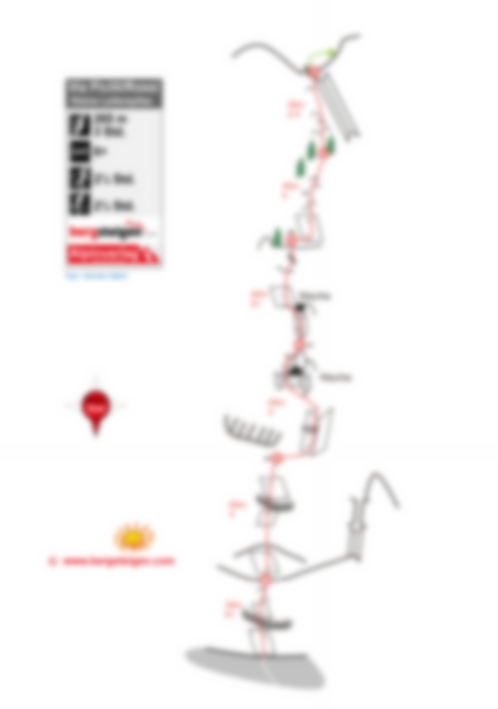 R2 = Mittelmäßig abzusichern, mit guten Zwischensicherungen, die aber weniger zahlreich sind. Zwingende Kletterstellen zwischen den Sicherungspunkten. Potenzielle Sturzlänge beträgt höchstens ein paar Meter und ein Sturz ist ohne Folgen