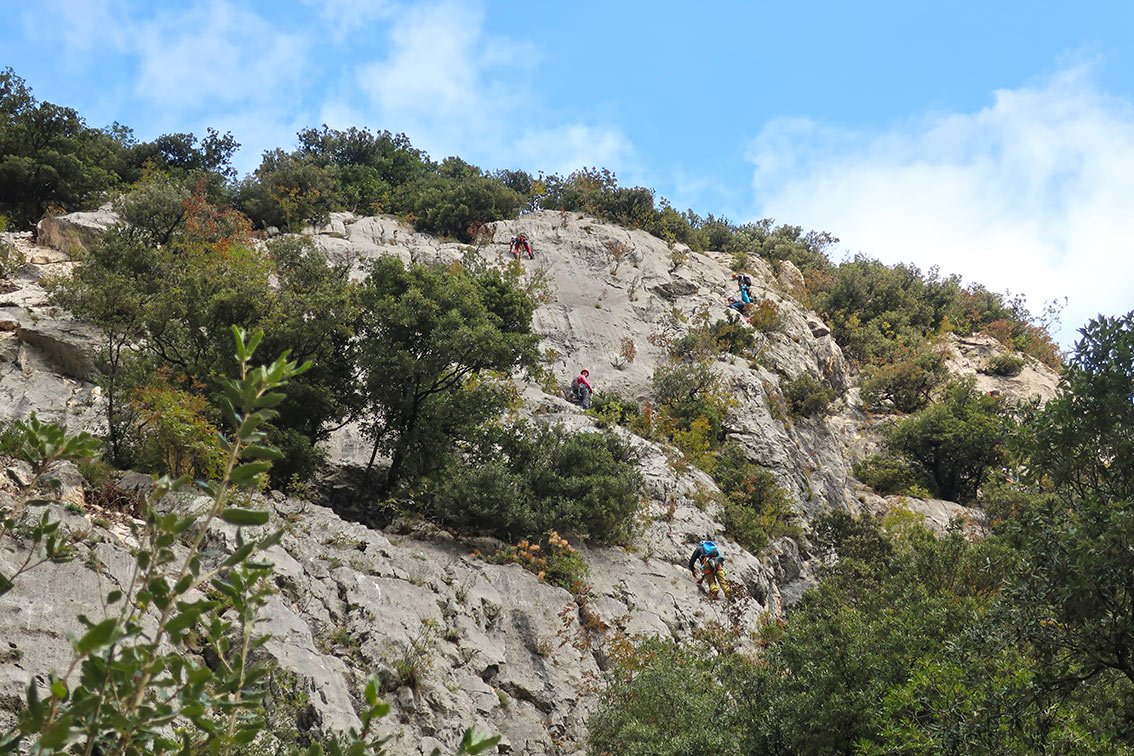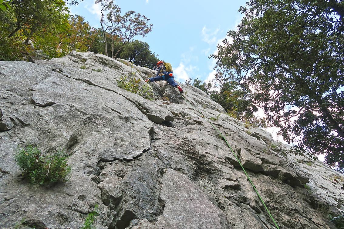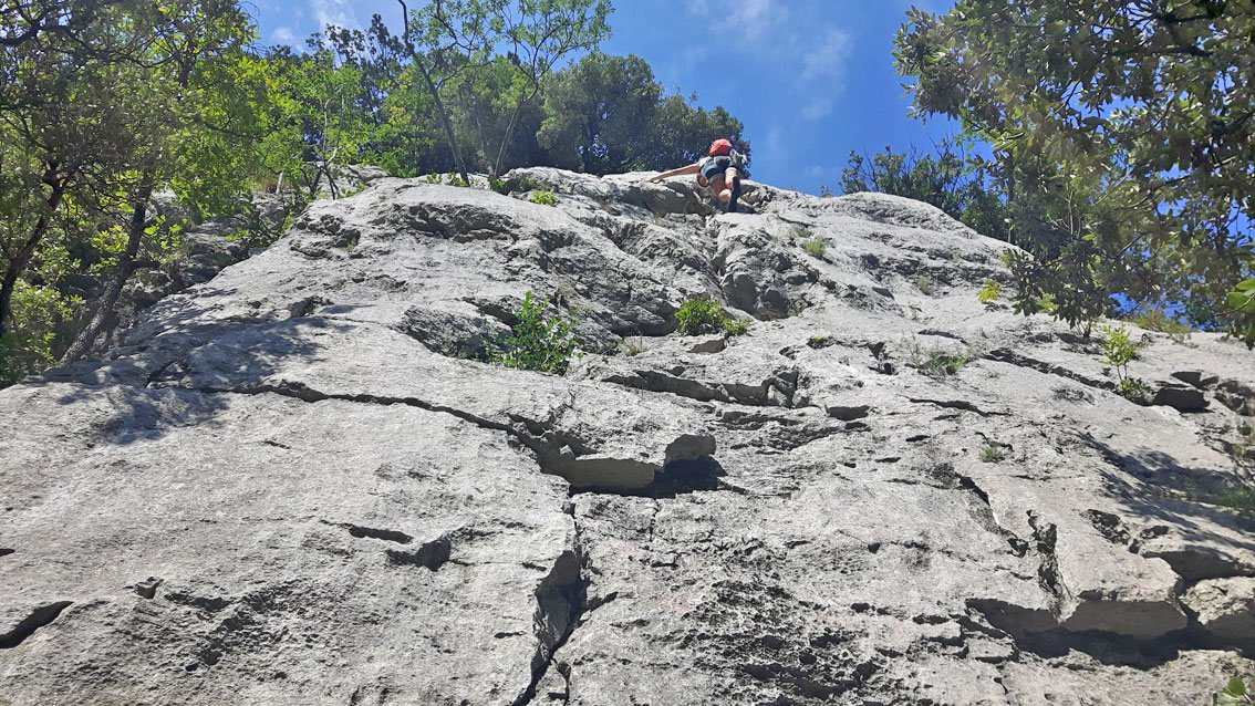 Wer am Ende noch etwas aufsteigt und nicht gleich links den Schnellabstieg nimmt, kann die lohnenden und sehr gut gesicherten 1 Seillängen Touren Papa und Ciccia noch mit anhängen (siehe Topo und Übersichtbild).