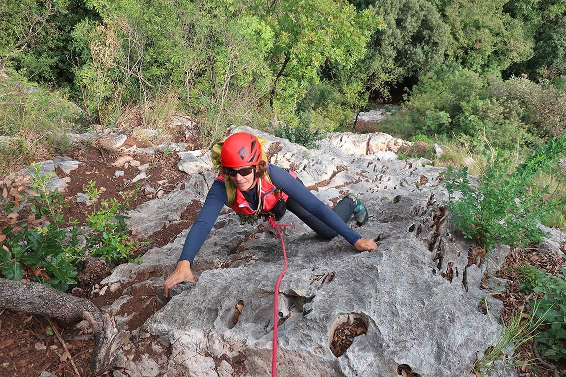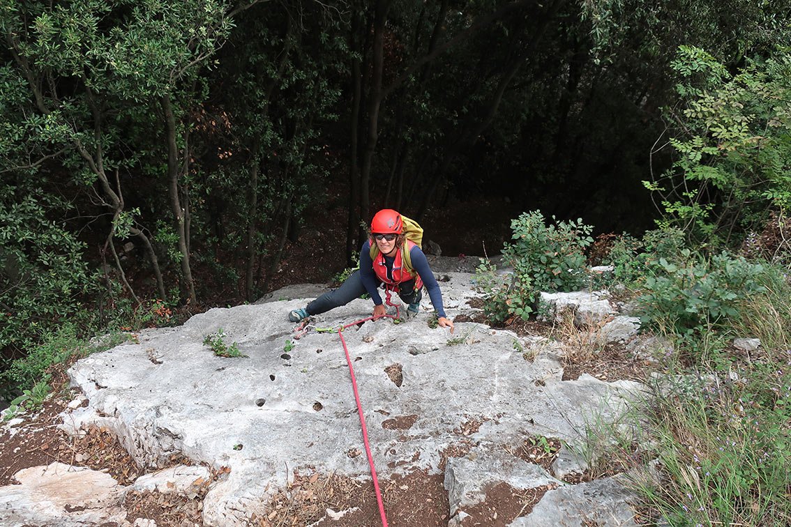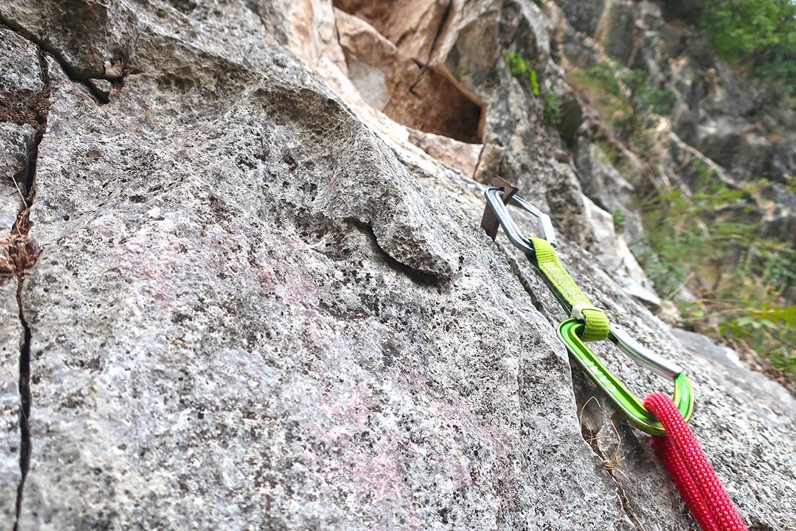 Pungitopo - Weg des stechenden Mäusedorns. Eine etwas gesuchte aber wirklich gut geputzte Genussklettertour im ganz rechten Teil der Parete San Paolo. Die Route ist einen wenig leichter als die daneben verlaufende Via Siuxie. Trotz der fehlenden Bohrhaken ist der Anstieg bei Einsteigern beliebt.