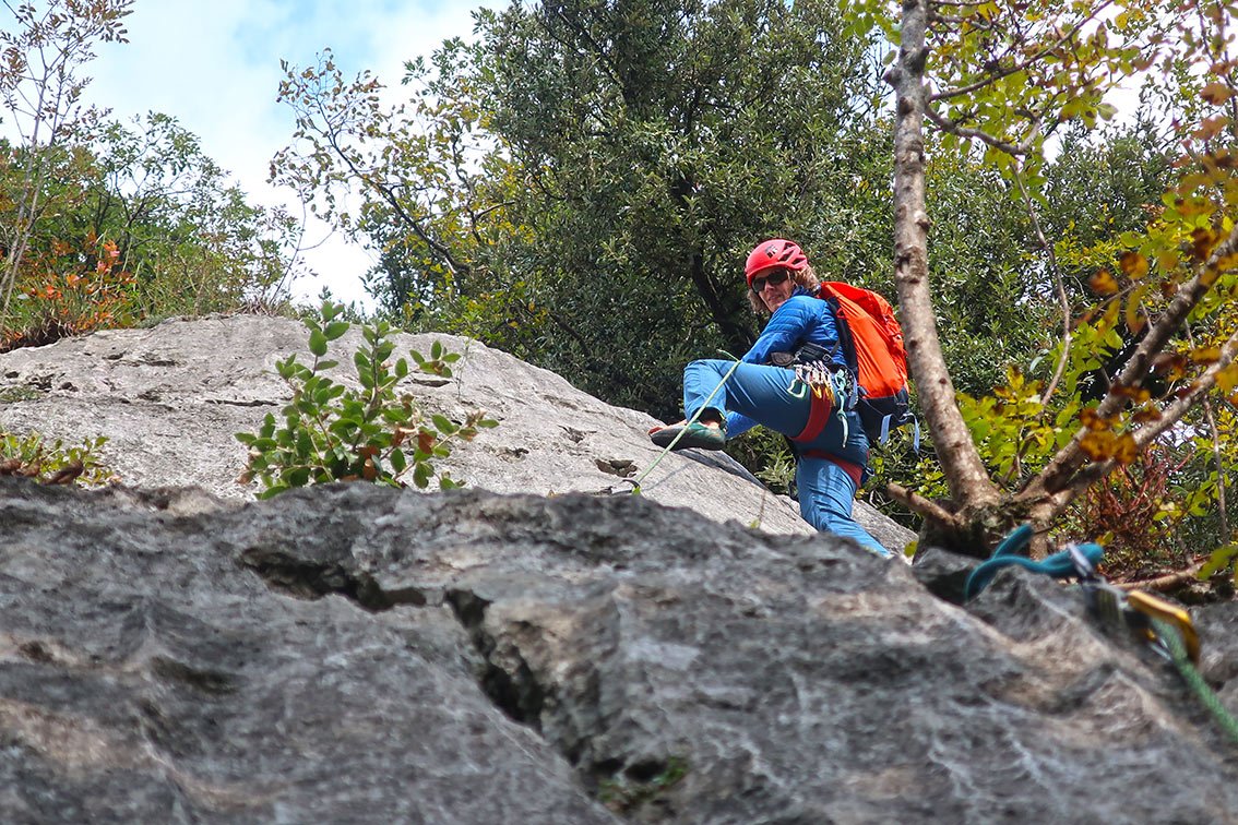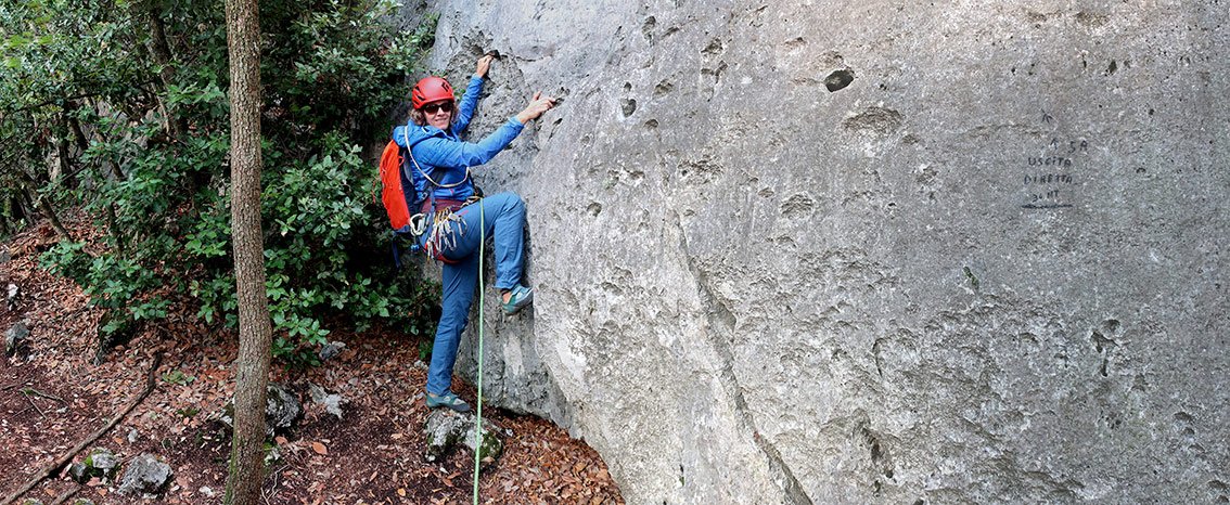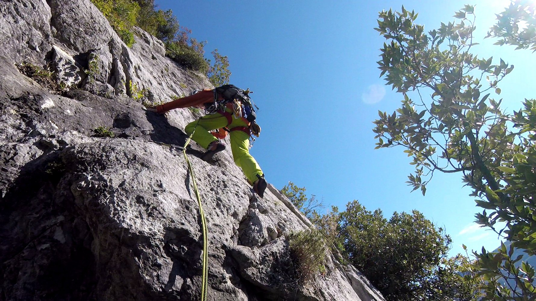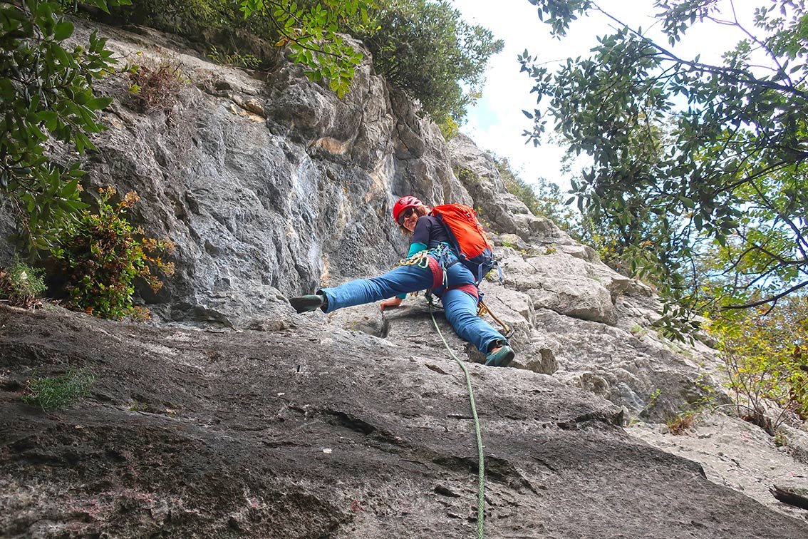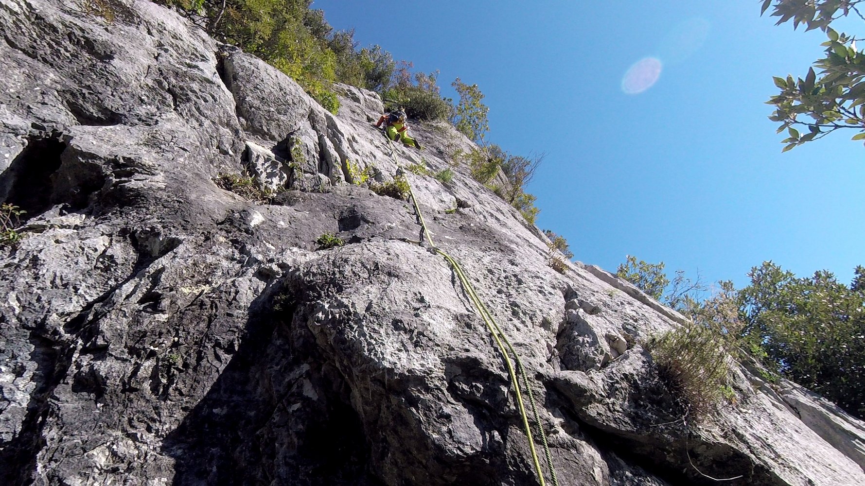 Die Via Sesto Senso (Sechster Sinn) ist ein schöner, langer Klassiker im Val di Ledro. Highlight ist der tolle Plattenpfeiler in der 3ten Seillänge - einfach perfekte Kletterei im oberen 5ten Schwierigkeitsgrat. Die Schlüsselpassage in der zweiten Seillänge kann man links umgehen, dann kommt man mit einem 5/5+ Kletterkönnen gut bis zum Ausstieg dieser lohnenden, gut abgesicherten Sportklettertour. Der direkte Ausstieg ist später dazu gekommen und führt zum Klettergarten hinauf. Ein toller Seeblick ist natürlich auch bei dieser Tour garantiert.