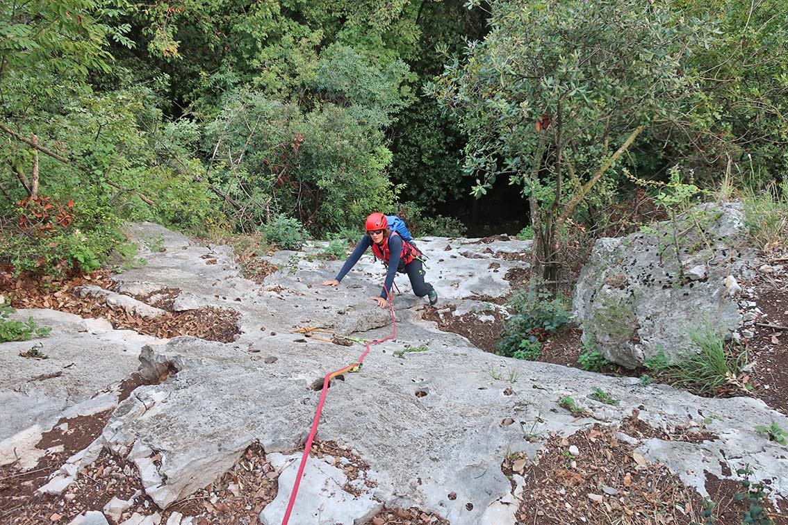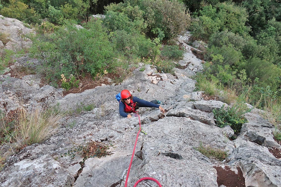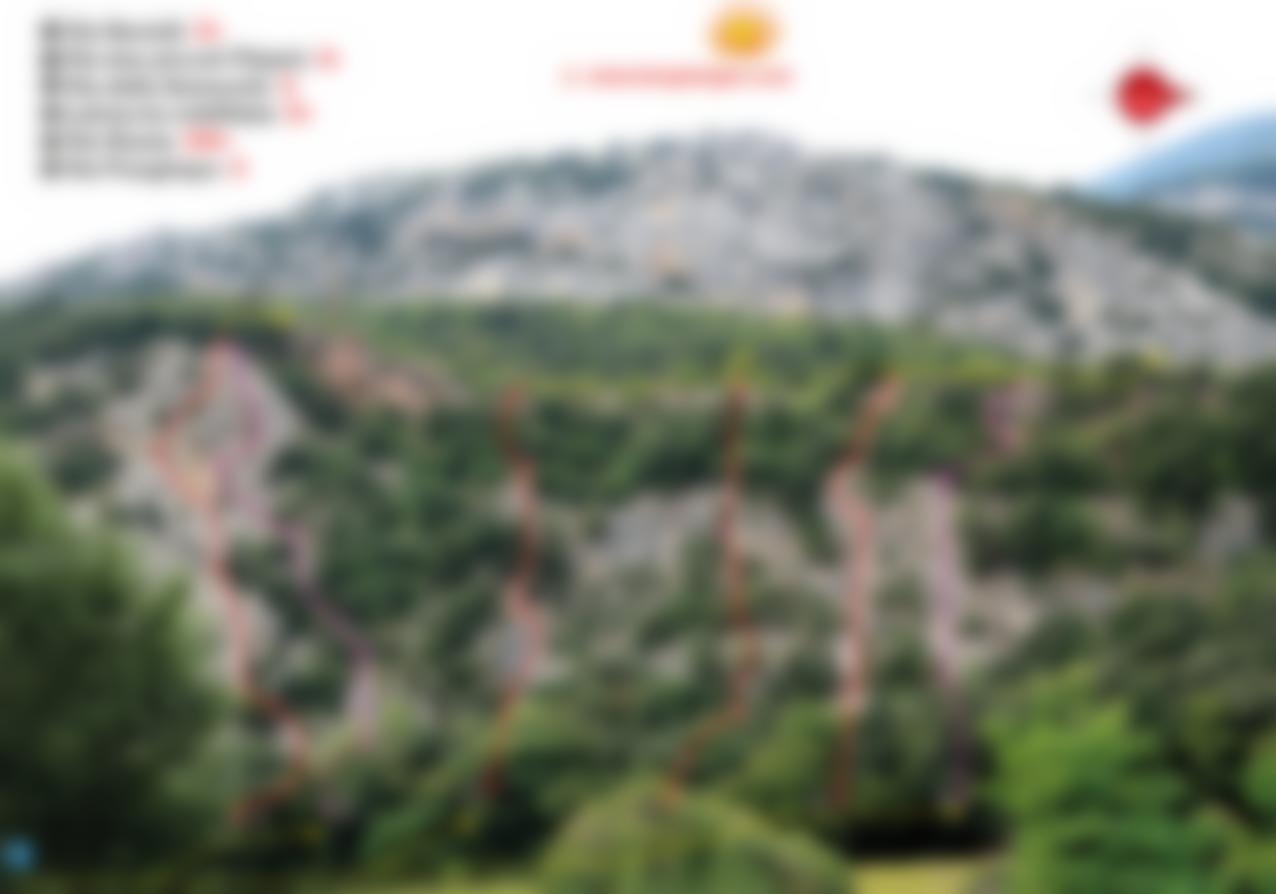 Die Via Siuxie ist eine nette, etwas gesuchte aber sehr gut geputzte Genussklettertour im ganz rechten Teil der Parete San Paolo. Die Route hat in der Mitte einen kleinen Überhang und am Beginn der letzten Seillänge eine etwas kräftigere Passage. Die Route eignet sich gut, um etwas den Umgang mit mobilen Sicherungen zu üben, da sich die vorhandenen Sicherungen noch deutlich ergänzen lassen.