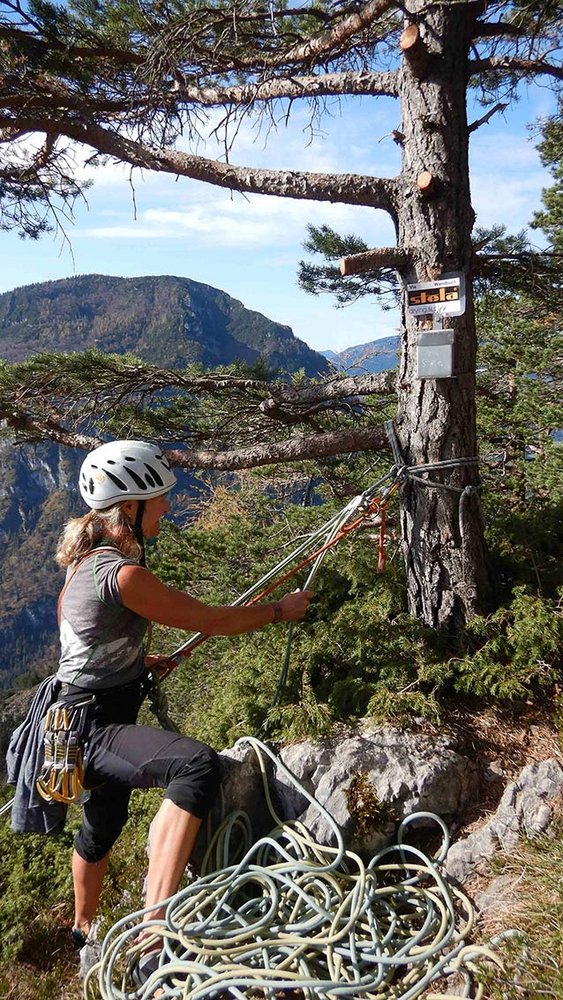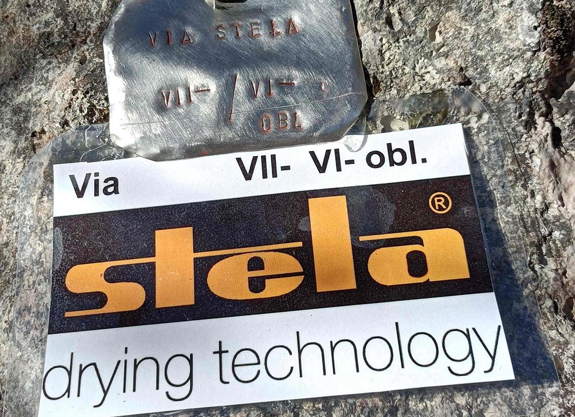 Der Via Stela ist eine sehr gut abgesicherte Genusskletterroute ca. 10 m links der Route „S‘Lebn zäiht“ (Tafel). Der „Via Stela“ wurde für Kletterer im unteren 6ten Grad angelegt, die kurze Vll-/Vl+ Passage (größenabhängig)kann man sehr gut mit Hakenhilfe überwinden. Der Anstieg wechselt zwischen Rissen, Platten, Rampen, kleinen Verschneidungen und griffigen Überhängen in überwiegend kompaktem Fels - alle 6er-Stellen können genullt werden. (mit Hakenhilfe 6-). Schwierigkeit, Charakter, und Absicherung ähneln den Routen „GrillMax und Rauer Rabe“.