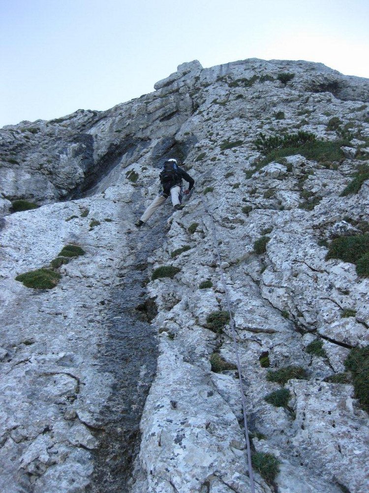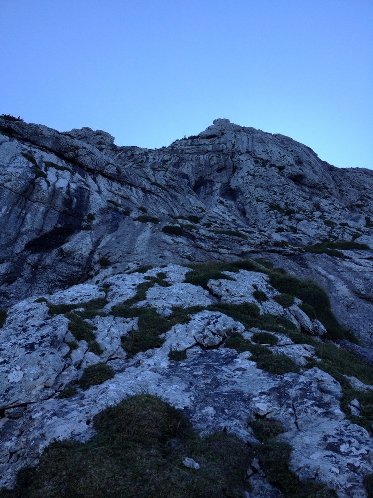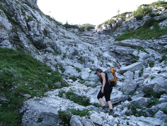 Der Abstieg über den Scheckenberger-Steig ist zwar streckenmässig kürzer aber wegen der z. T. steilen Schrofen ungünstig und kaum schneller.