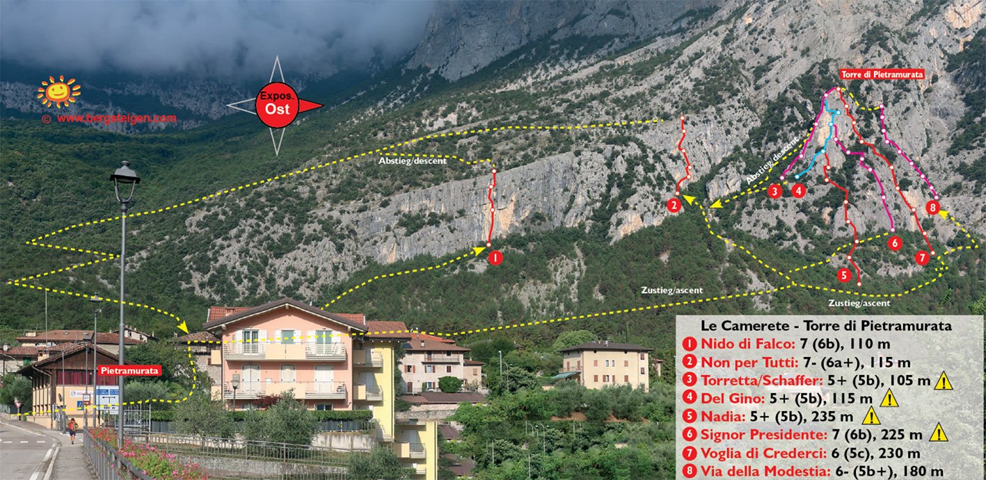 Die Route Voglia di Crederci ist eine ansprechende Route direkt am Torre di Pietramurata oberhalb von Ort Pietramurata. Der Anstieg ist gut abgesichert und bietet schöne Sportkletterei. Steile Wandstufen, Platten und Rissverschneidungen führen direkt auf den Torrre di Pietramurata. Obwohl die Erstbegeher wirklich viel geputzt haben, bleiben ein paar rustikale Passagen übrig, im gesamten aber ein sehr lohnendes Kletterabenteuer, mit perfektem Sarcatal-Ausblick bis hin zum Toblino-See.