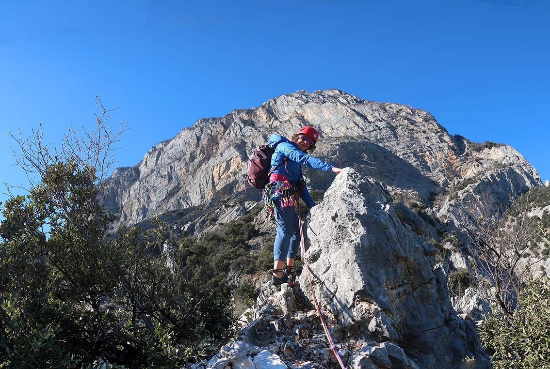 60 m Seil, 11 Expressschlingen, Kletterausrüstung und Helm. Evtl. auch kleine Friends/Cams (in der 5ten Seillänge steht der Normalhaken weit raus, dort ist z.B. eine zusätzliche, mobile Sicherung sinnvoll).