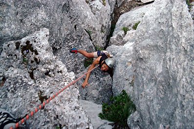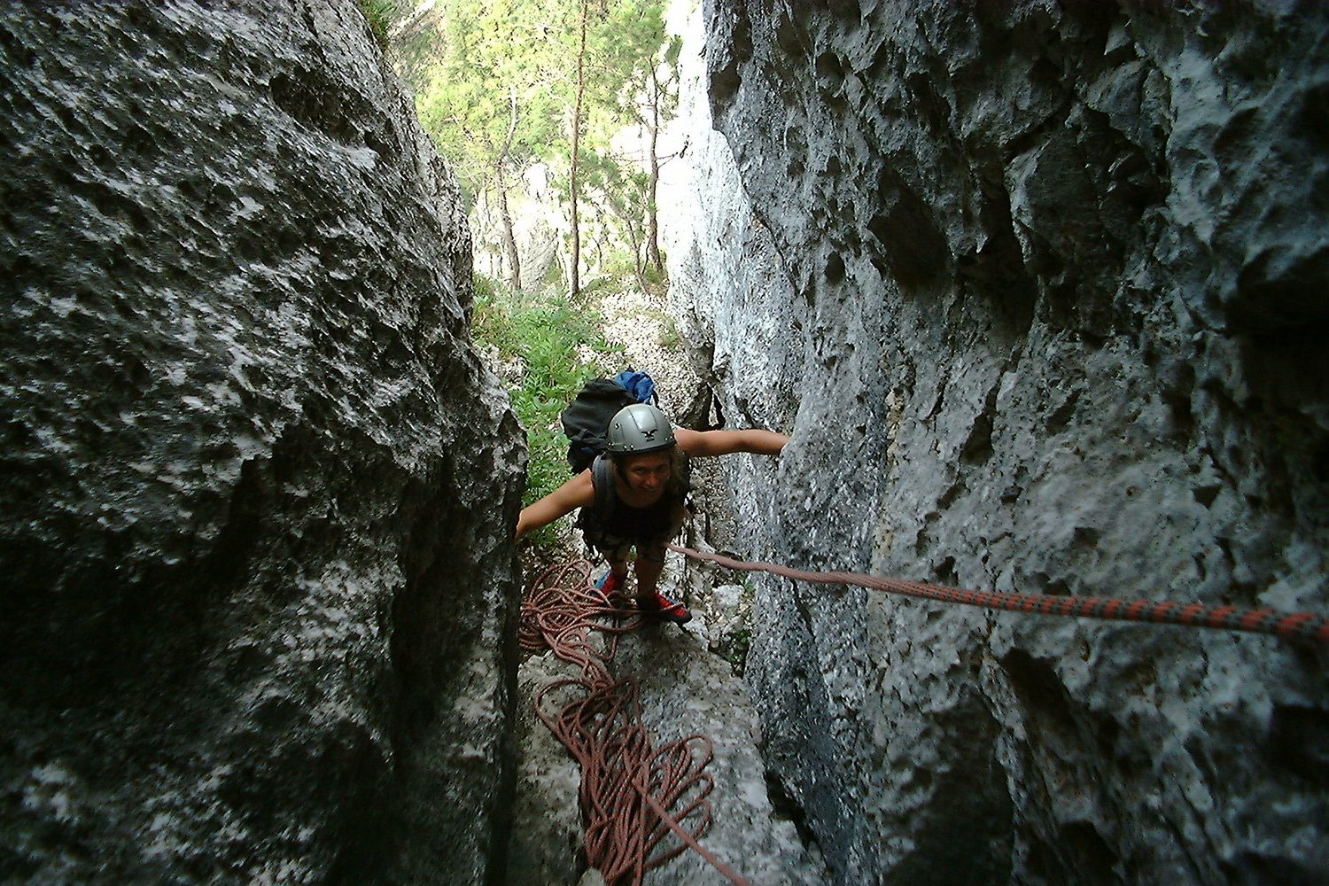 Sicherlich die beste Kaminkletterei auf der Rax. Die Tour weist bis auf die ersten 5 m schönen und festen Fels auf. Die Absicherung ist für einen Kamin auch akzeptabel und kann mit Keilen, mittleren Friends und Bandschlingen noch verbessert werden. Ein Muss für heiße Tage.