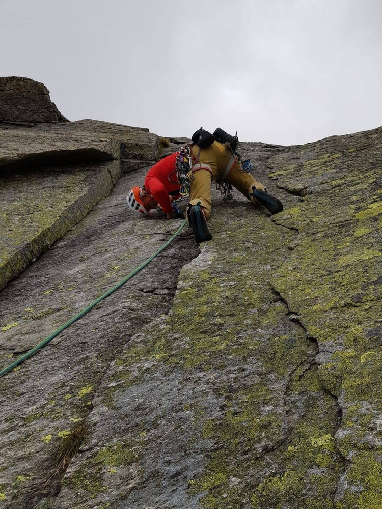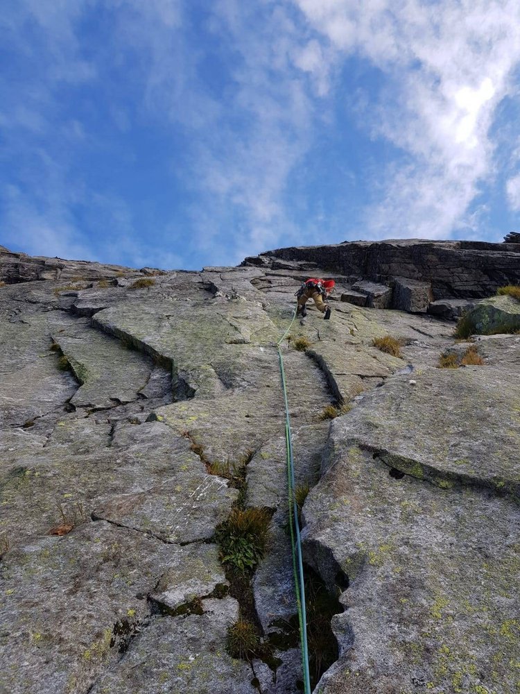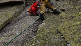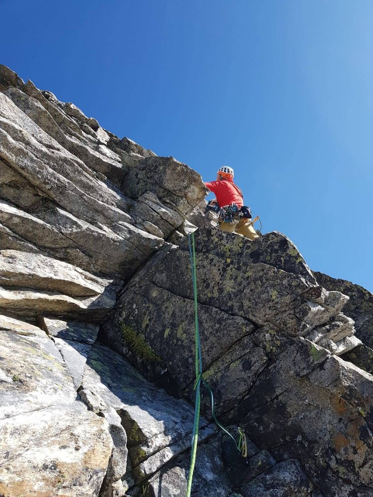 Alpine Tour im besten Granit und wunderbarer Aussicht. Die Tour ist neben der Soalzwirbler eine der längsten in der Wand.