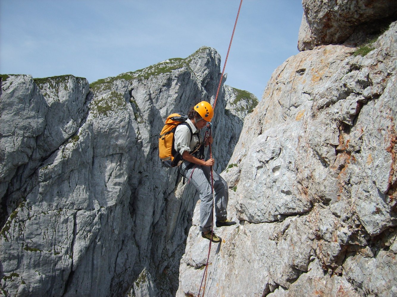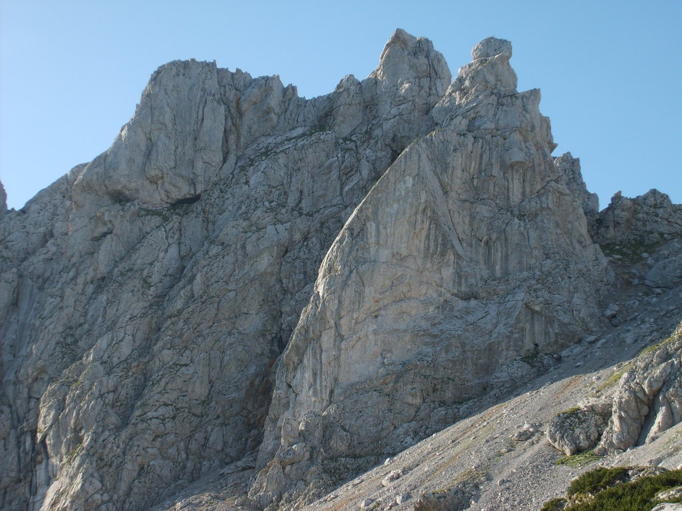 Schöne und kurze Kletterei im Nahbereich der Voisthalerhütte (ist in 20 min zu erreichen). Sie gehört zu den beliebtesten Touren im Hüttenbereich. Die Route wurde mit Bohrhaken saniert.