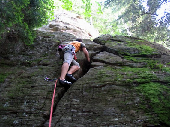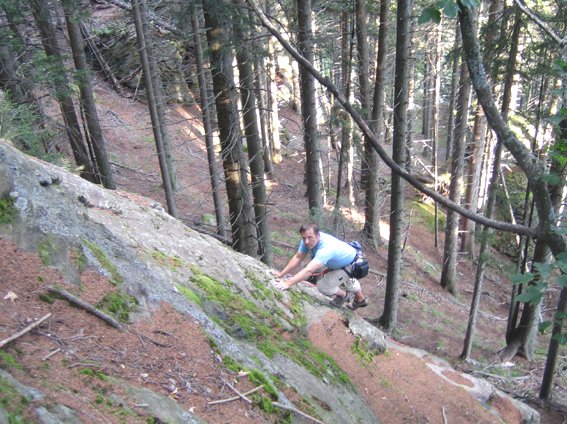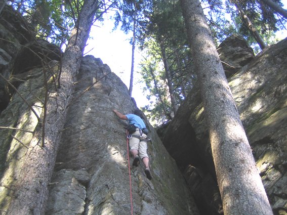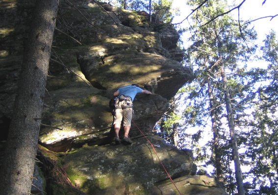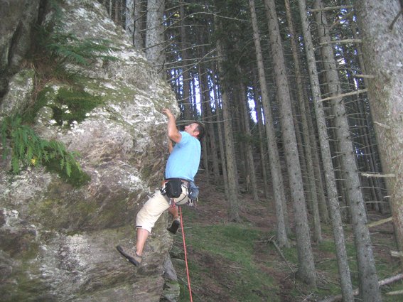 Sehr schöne und nette Aneinanderreihung von Urgesteinsblöcken im tiefen Wald, die man zu einer 18 Seillängen langen Kletterwanderung zusammenfügt. Die Tour ist gut mit Bohrhaken gesichert und kann im Sektor A jederzeit problemlos abgebrochen werden. Daher ideal für Kinder und Anfänger.