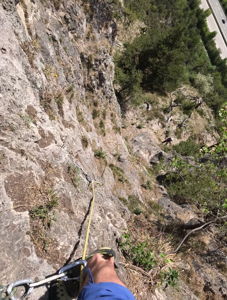 Eine Einsteigertour mit sehr guter Absicherung, so etwas zieht in der Regel die Massen an. Wenn der Fels dann etwas "splittrig" ist und man direkt oberhalb der Innntalautobahn klettert sind das aber keine Publikumsmagneten. Trotzdem, die Tour ist im großen und ganzen nicht so schlecht und an den schweren Passagen sehr gut mit Bohrhaken gesichert.