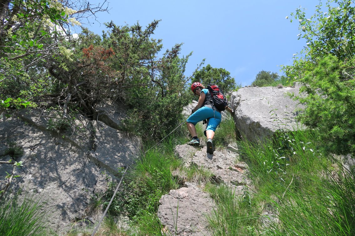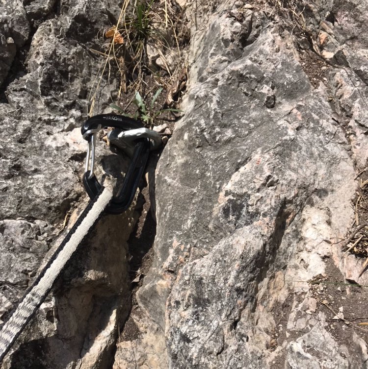 Die Klettertour ist sehr gut gesichert, im leichten Gelände (1-2) sollte man aber sicher unterwegs sein. Der Abstieg ist etwas tricky (nicht einfach zu finden).