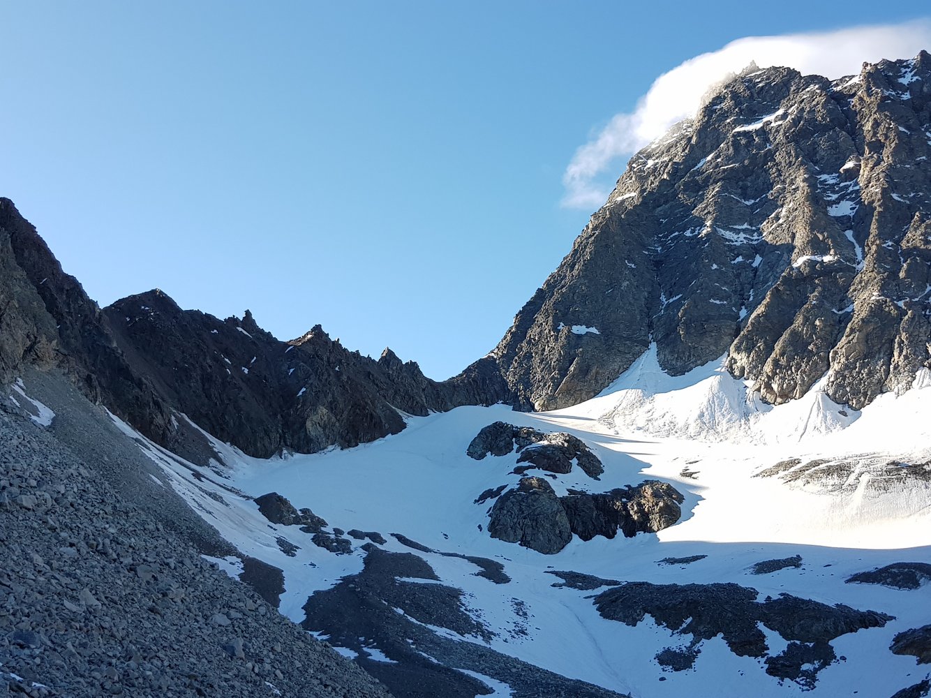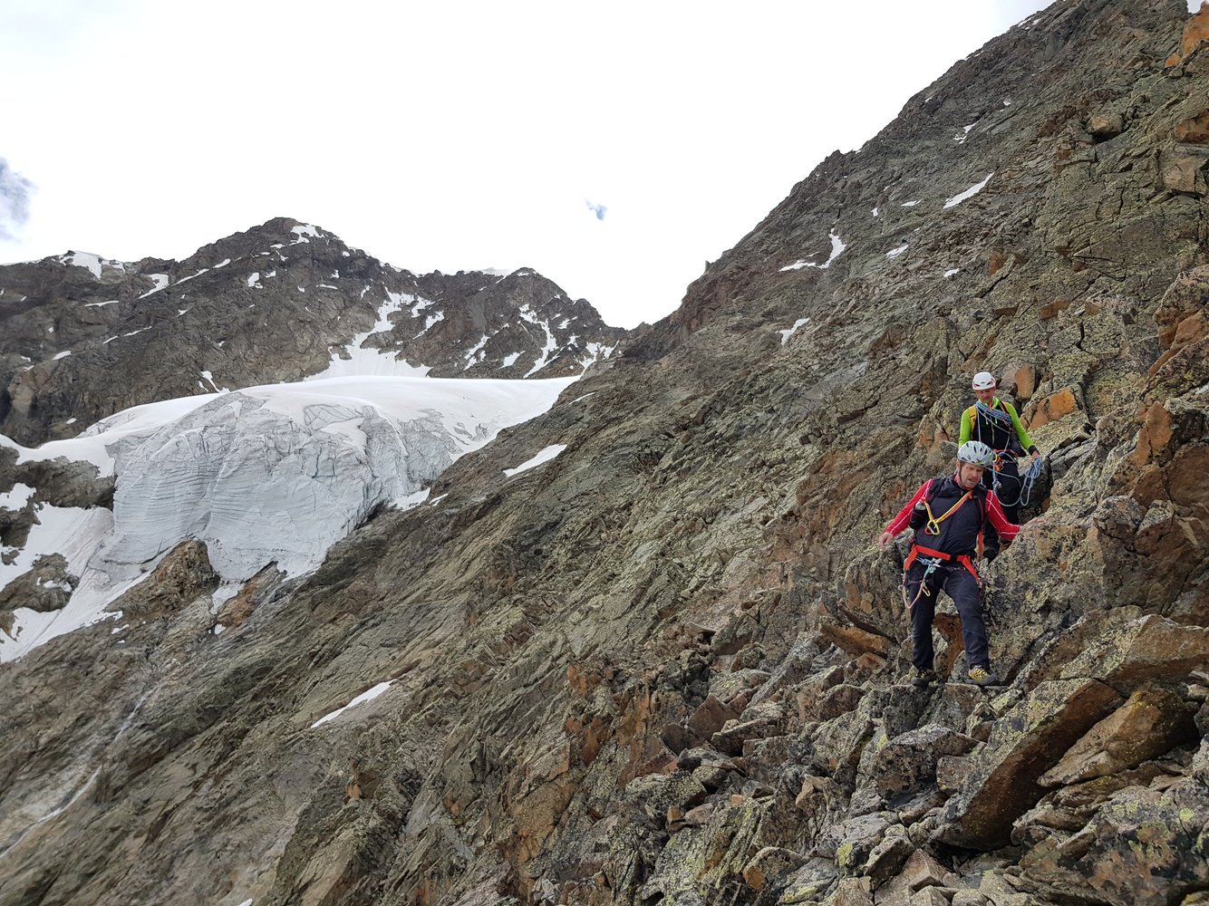 Je nach Abstieg Steigeisen, Pickel und Gletscherausrüstung.
