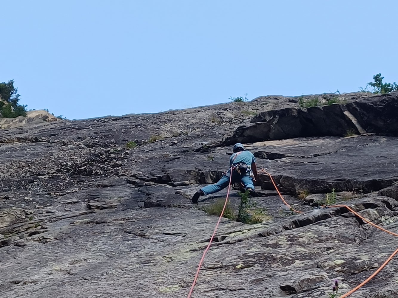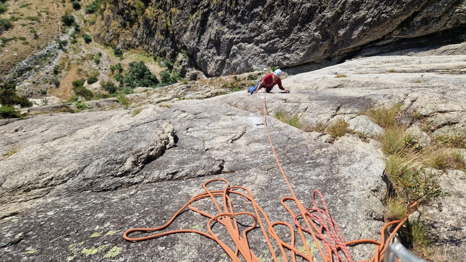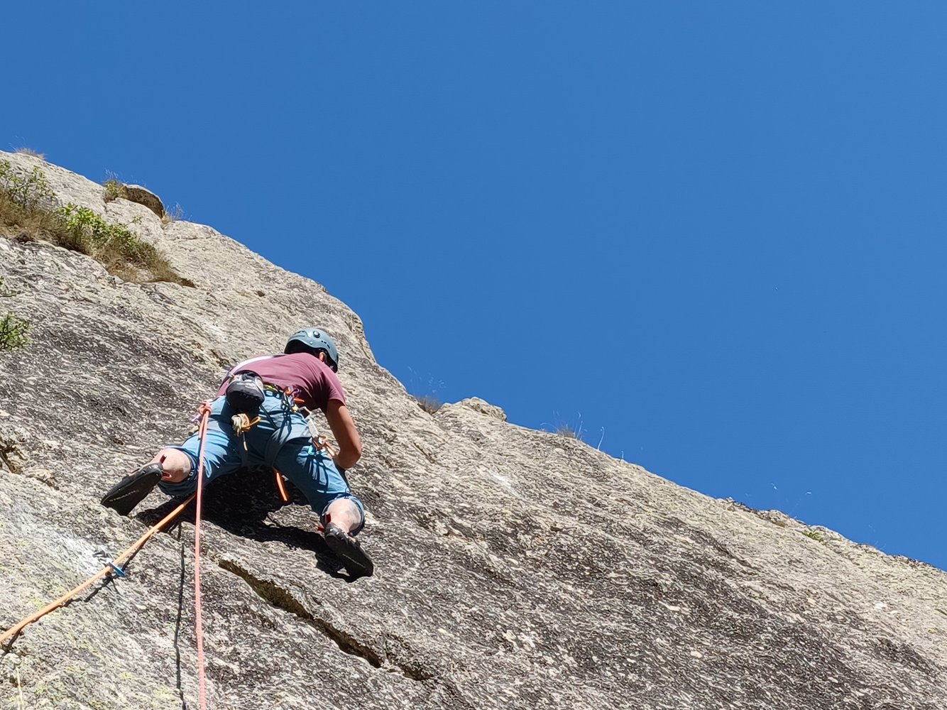 Bombenfester Granit, kurzer Zustieg, landschaftlich super (Ailefroide ist einfach cool) und durchgehend mit Bohrhaken abgesichert: gibt es auch einen Haken? Nein, zumindest dann wenn man Plattenkletterei mag. Wobei die Tour auch zwischendurch andere Features wie Verschneidungen aufweist. Die Tour ist gut abgesichert - aber im Vergleich zu den populären Plaisirrouten im Tal muss man schon ein wenig weiter weg vom Haken klettern. Will heißen: die 6c-Stellen sind obligat zu klettern (der letzte Bohrhaken bei oder knapp unterhalb der Füße). Die Variante in der 5. Seillänge konnte nicht befreit werden, ist aber eh nicht so schön wie die später entdeckte jetzige Länge. Wenn wer Lust hat: wir haben die Bolts belassen.