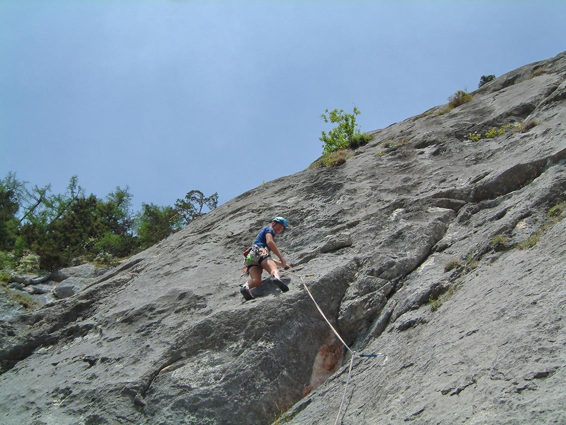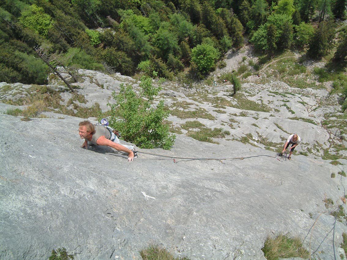 Sehr ansprechende und steile Plattenkletterei an der oberen Diesbachwand. Die Tour bietet im Mittelteil sehr schöne, steile Platten. Die Schlüsselstelle ist ein kleiner Überhang gleich nach dem 4ten Stand. Auch die Ausstiegs Seillängen sind relativ gut zu klettern.