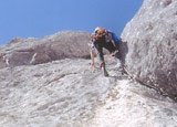 Alpine Technotour. Zu den vielen vorhandenen alten Normalhaken (unterschiedliche Qualität) lassen sich gut Friends und Keile legen.