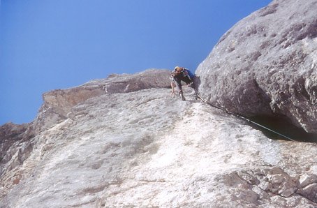 Die klassische Route ist in letzter Zeit etwas in Vergessenheit geraten. Die alpine Tour bietet lange Kletterei in meist sehr gutem Fels. Zu den vielen vorhandenen Normalhaken (unterschiedliche Qualität) lassen sich gut Friends und Keile legen. Die 3. Seillänge ist lange feucht, allerdings ist der Fels dort sehr griffig. Insgesamt ist der Weg der Jugend anspruchsvoll aber sehr lohnend!