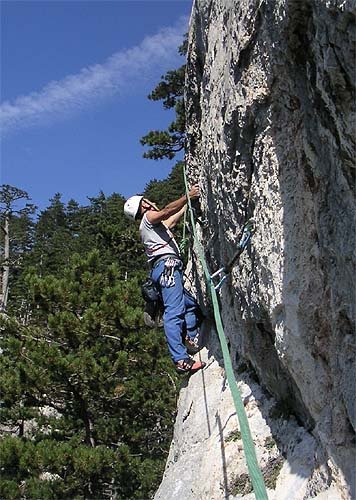 Die Route ist sehr gut mit Bohrhaken gesichert.