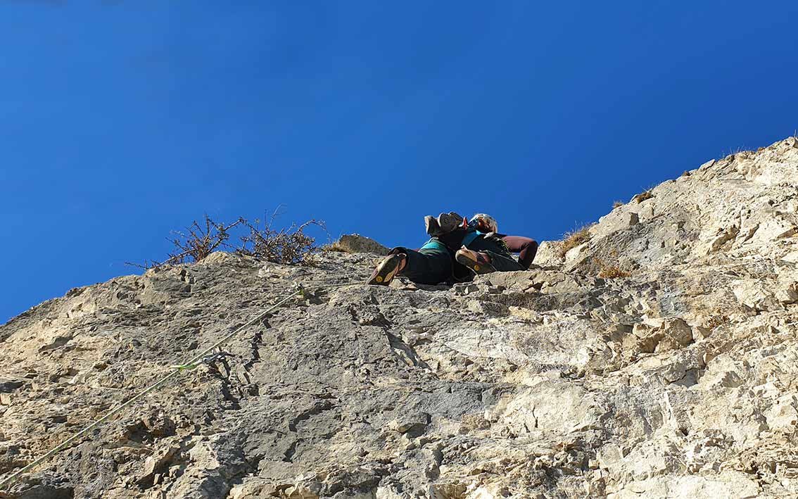 Mehrere Begehungen schaden der Route sicher nicht – teilweise noch splittrig, viele Graspolster und staubig! Alternativ kann der schwere Ausstieg am Ende rechts über die benachbarte Route Spätlese ausgestiegen werden. Schwierigkeit Ausstieg ca. 5, auch kann vom zweiten Stand die dritte steile Seillänge umgangen werden (siehe Topo).
