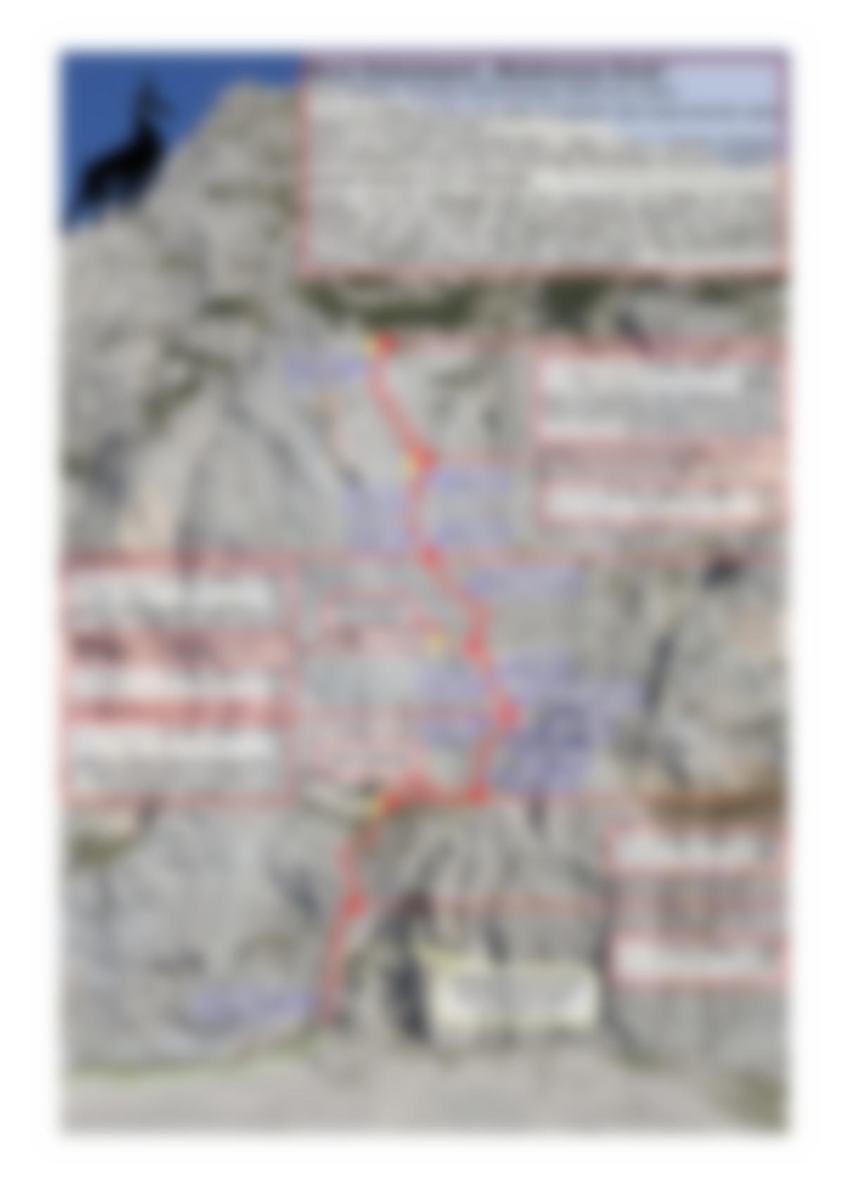 Über die Route Abseilen, seihe Topo! Stände zum Abseilen eingerichtet (60 m, bei 1. und 2. Abseiler Zwischenhaken einhängen!)