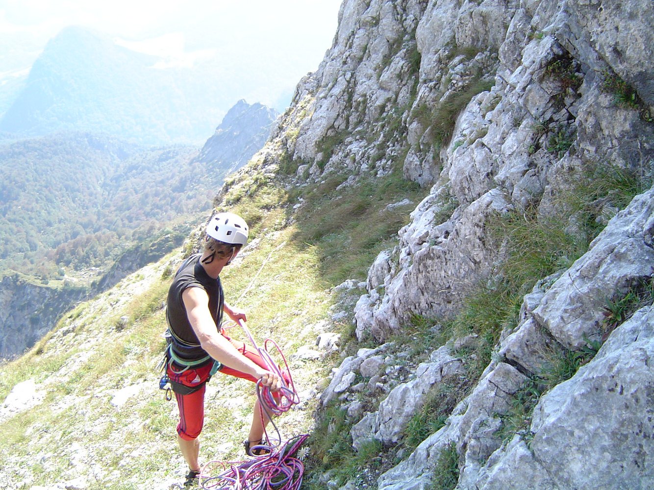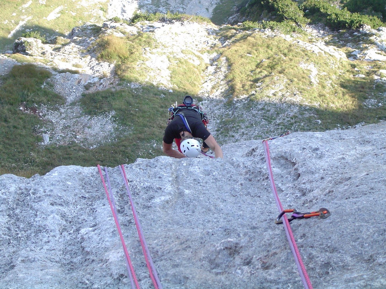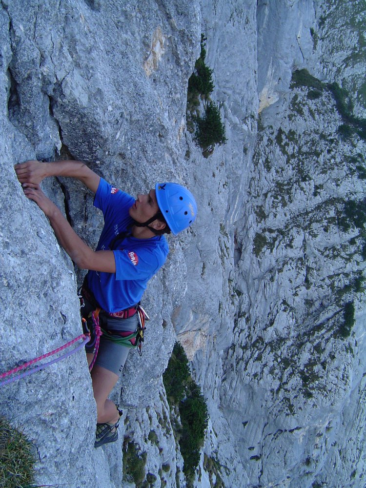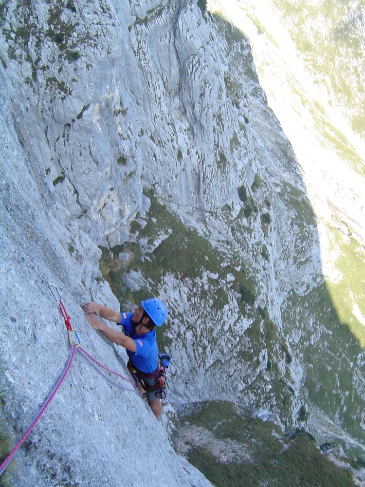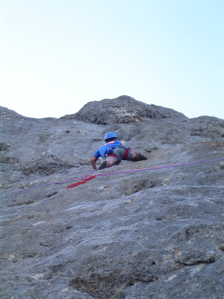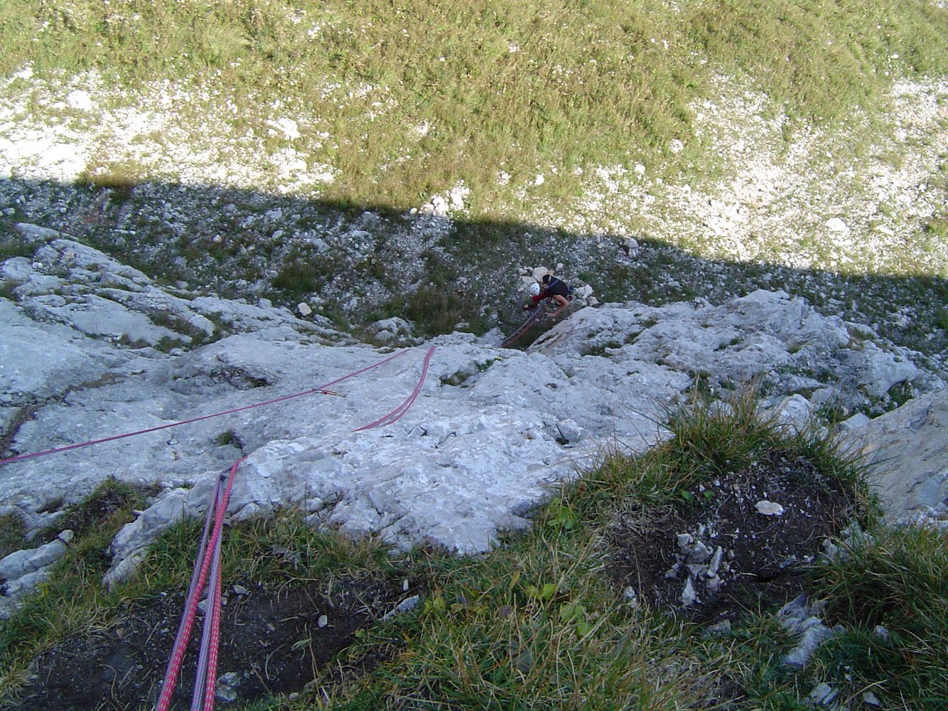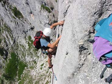 Wenn man über die Rampe klettert (also ab der 4ten Seillänge), klettert man direkt über den sehr stark begangenen Dopplersteig. Das heißt das jeder Stein der losgetreten wird, auf den Steig fällt - also aufpassen !!!
