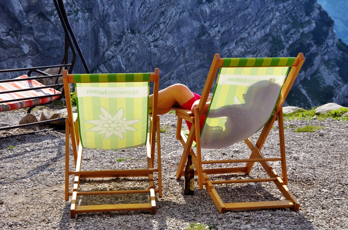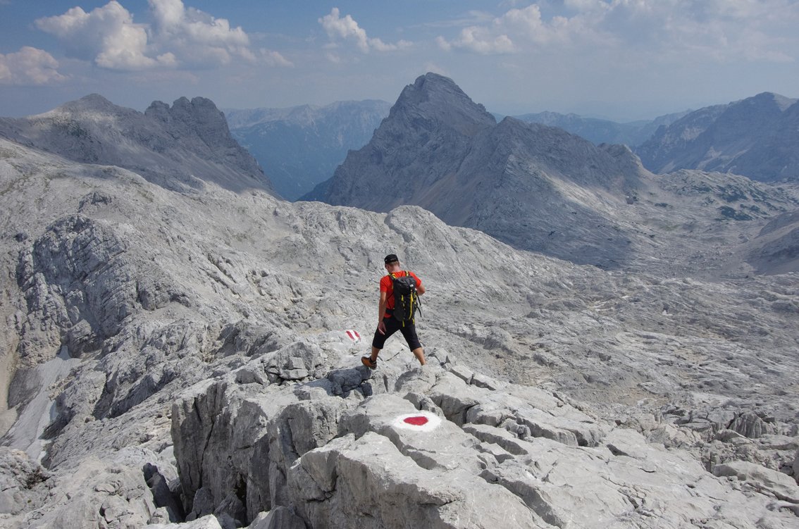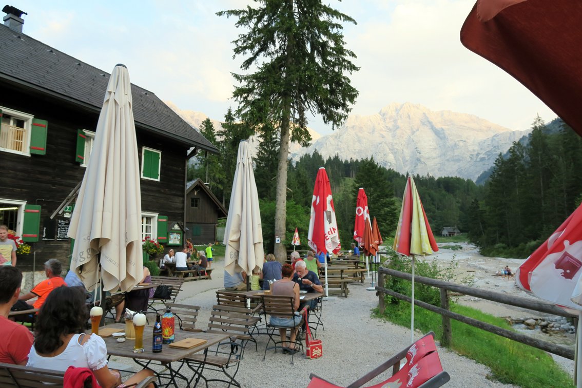 Vom Gipfel des Schermberges steigt man auf dem Wanderweg zur Welser Hütte ab (eine Steilstufe unten ist versichert, A/B, der Weg ist gut markiert). Von der Welser Hütte hinunter zum Almtaler Haus.