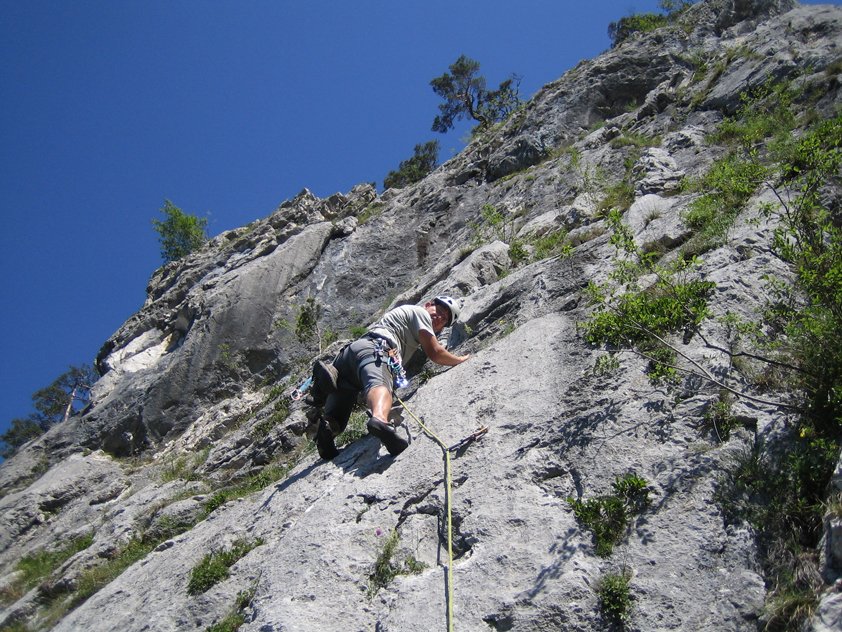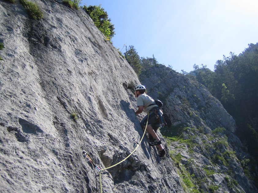 Die herausragendste und beliebteste Tour in der Südwestwand ist die sehr gut abgesicherte „Wer putzet der findet“. Tolle Plattenkletterei, viele Bohrhaken und eine schönen Blick auf den Traunsee - was will man noch mehr.