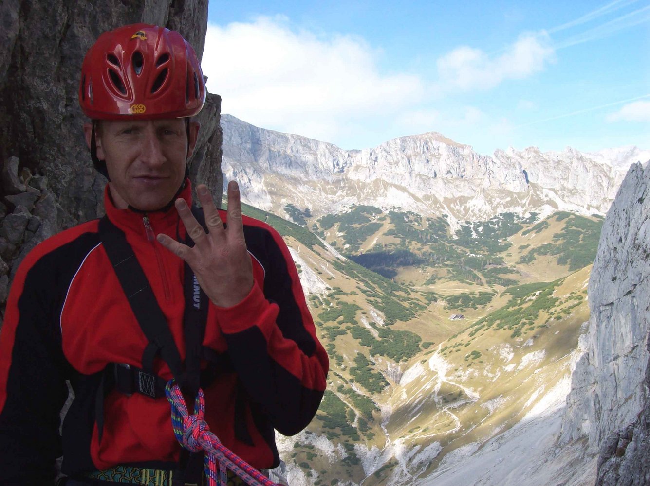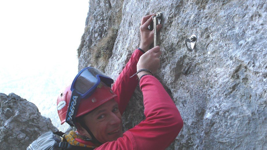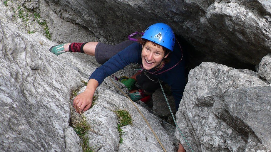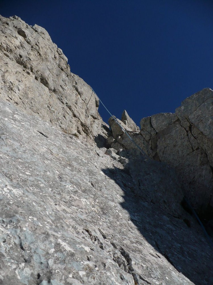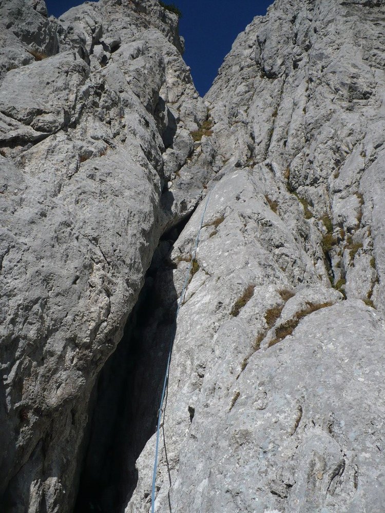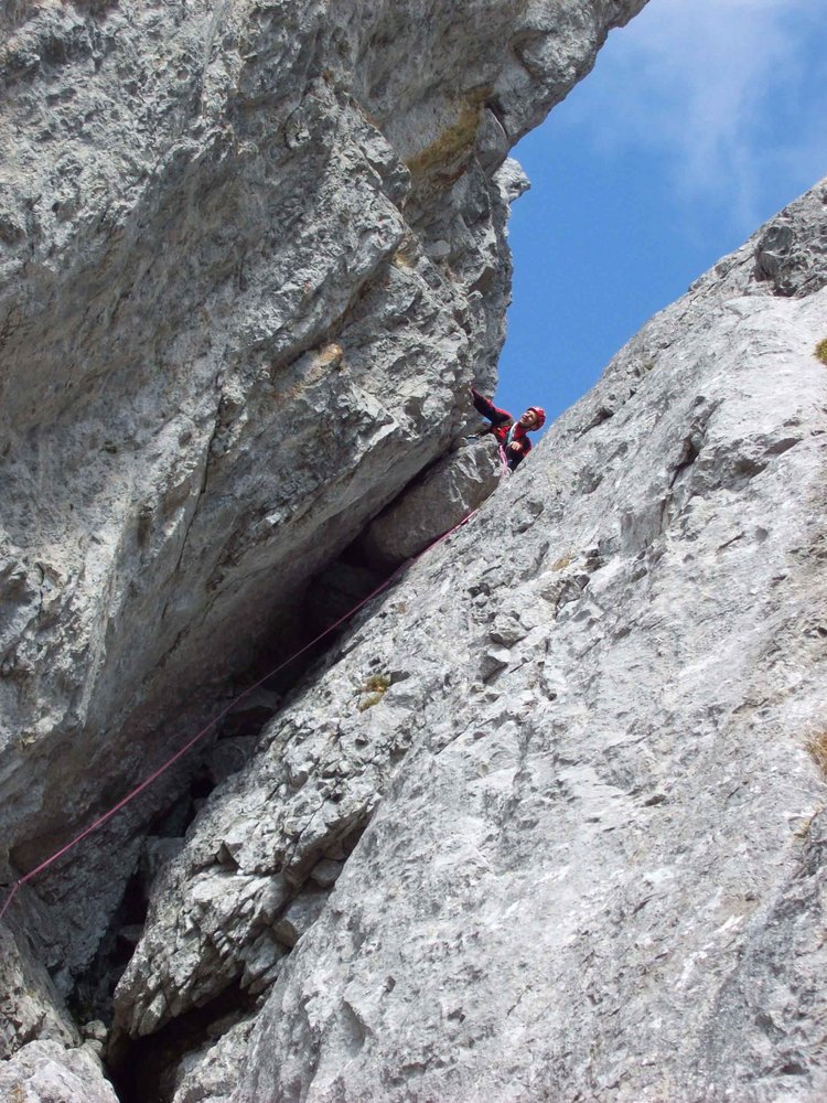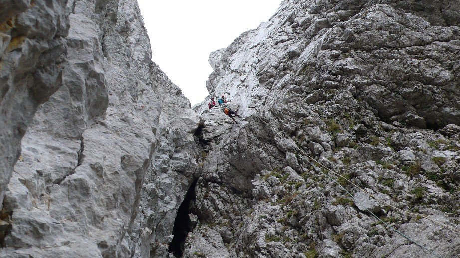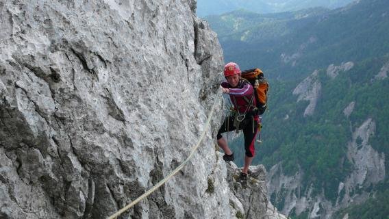 Kletterroute in nicht immer ganz festem Fels. Der vierte