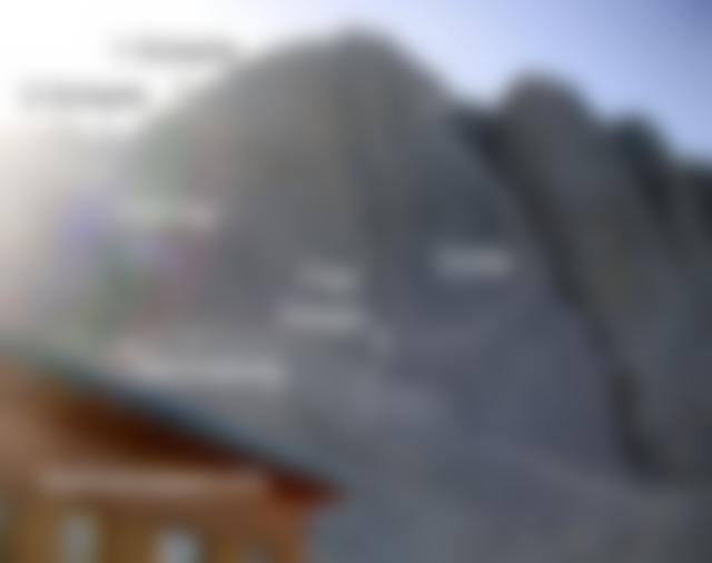 Siehe Topos. Der Originalausstieg Dülfer durch den schwarzen nassen Kamin (4+) kann rechts auf gutem Fels umgangen werden (4).