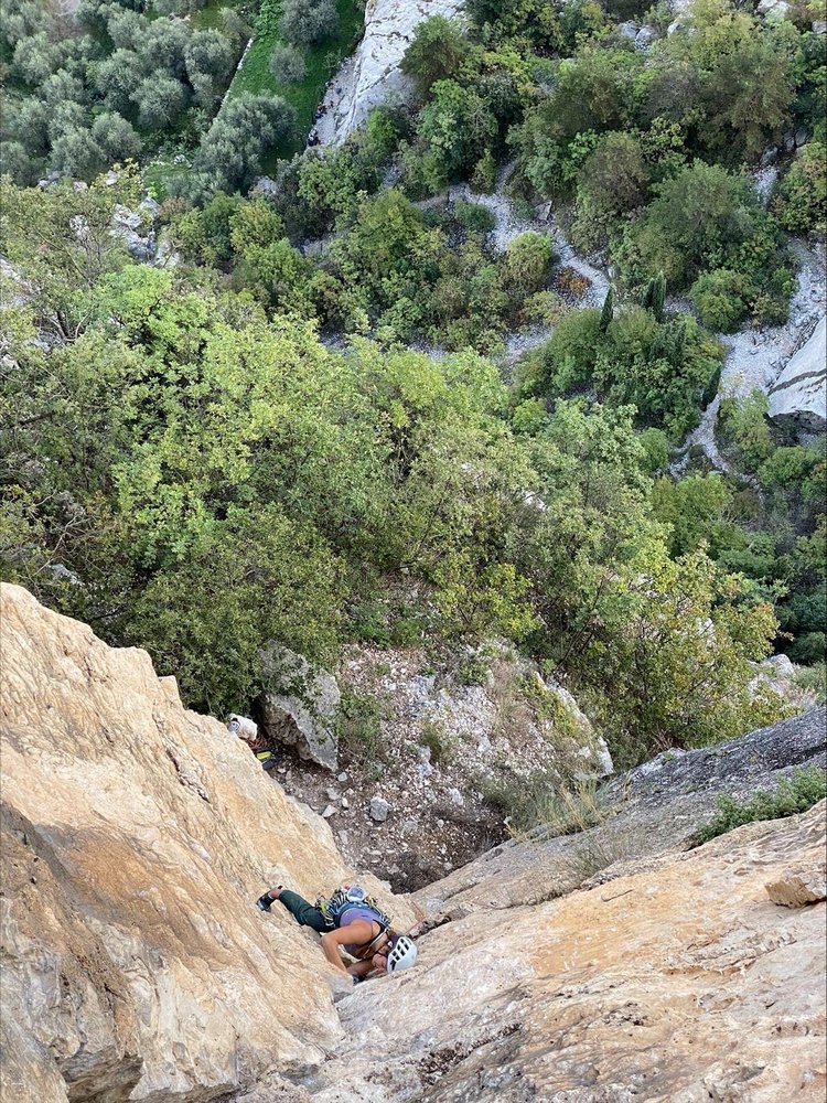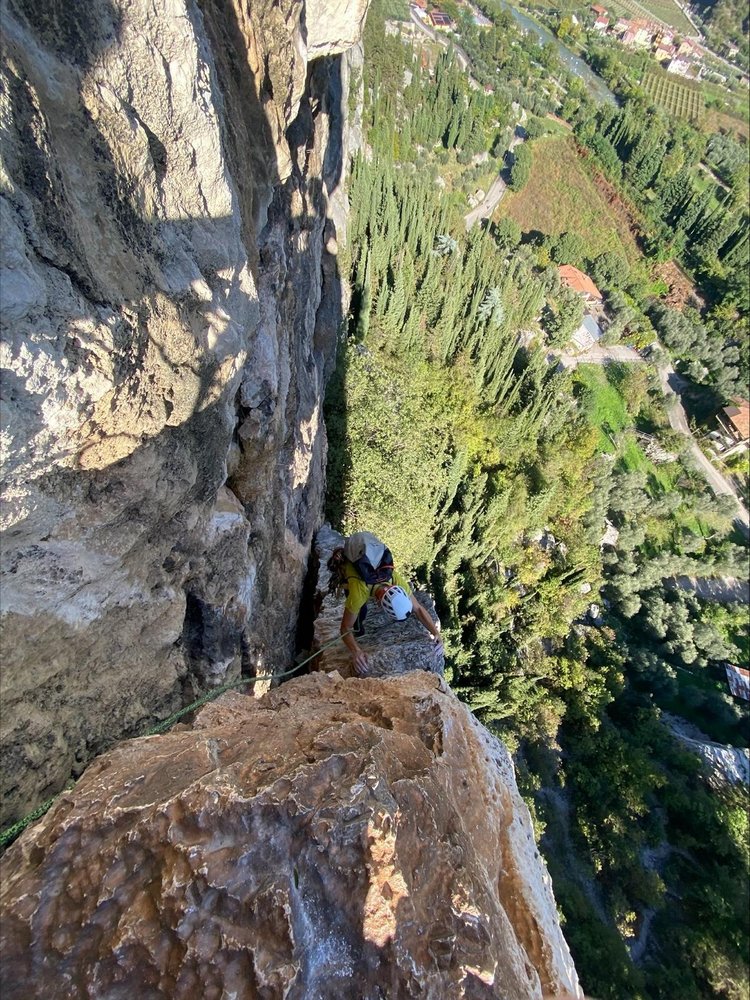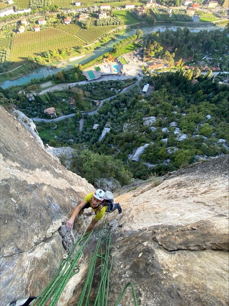 Fantastische Verschneidungs- und Rissklettertour am Colodri. Nachdem man die erste sehr abgespeckte Seillänge hinter sich gebracht hat, wird es nach oben hin immer besser! Vor allem die nahezu perfekte Verschneidung in Seillänge 6 und 7 ist ein richtiger Klettergenuss. Die sporadisch mit Bohrhaken abgesicherten Risse und Verschneidungen lassen sich super mit mobilen Sicherungsmitteln absichern. Wer Spaß am Selbstabsichern und hantieren mit Friends hat, ist hier in dieser Tour genau richtig.
